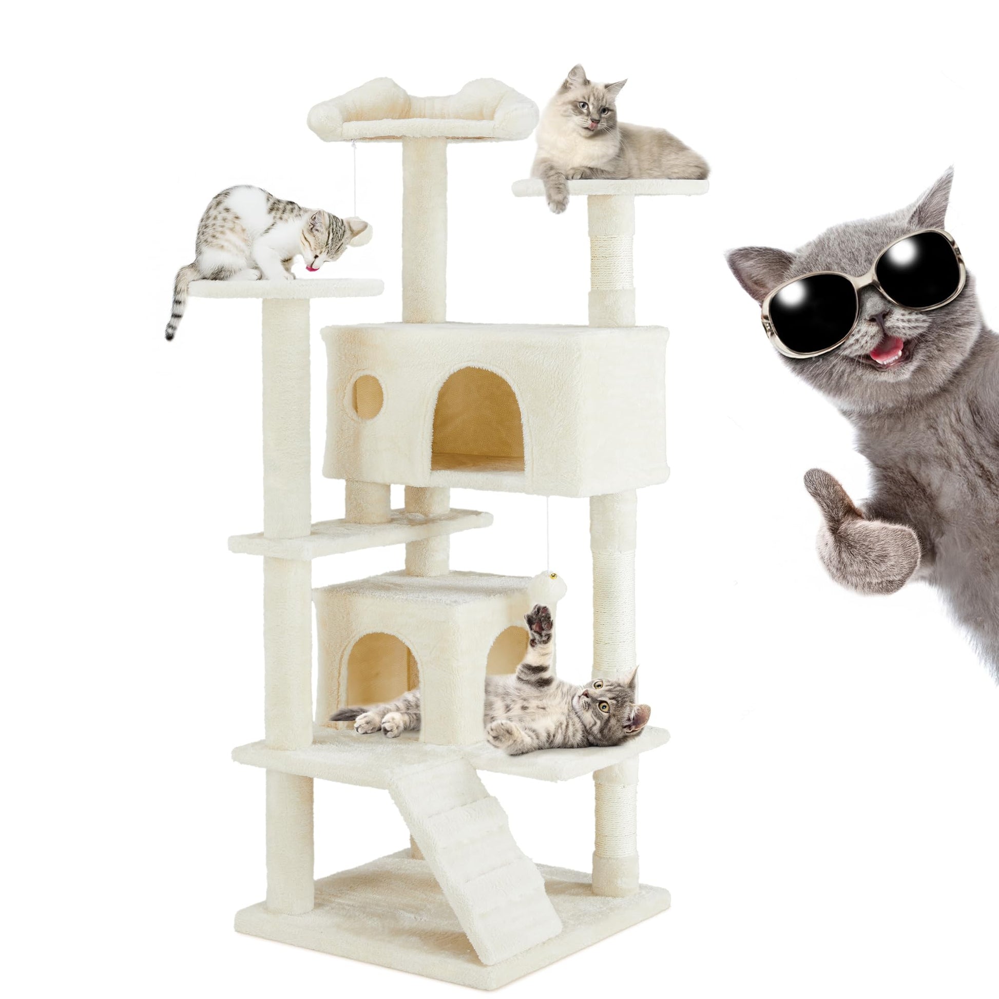 54 Inches Cat Tree Condo Furniture, Cat Tree for Indoor Cats, Cozy Hammock and Sisal Scratching Posts, Cat Tower Multi-Level Durable Cat Scratch Post for Kittens Pet House Play, Detachable, Beige