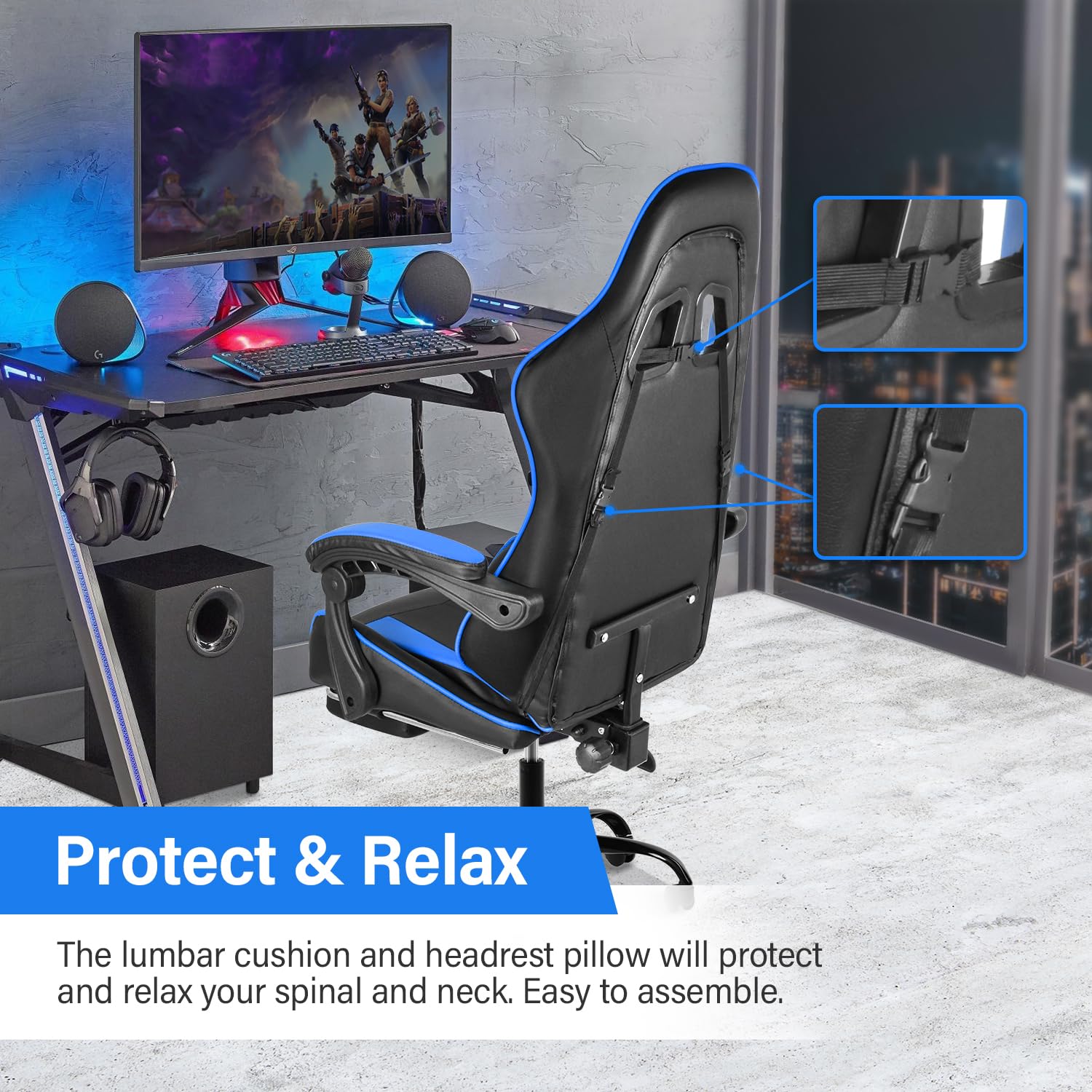 - Ergonomic Design for Superior Comfort: Experience unparalleled comfort with our gaming chair, designed with adjustable lumbar support, and neck pillow to promote a healthy posture during racing gaming sessions.