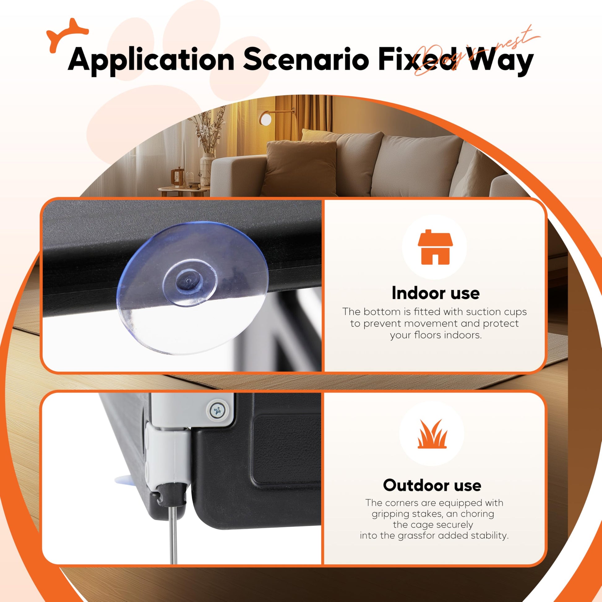 - Versatile Scenarios: Indoors, plastic dog playpen will prevent messes and ingestion harmful items for your dogs. Outdoors, it's great for yards, parks and camping. Puppy playpen can be set up flexibly to meet dogs' activity needs in various environments