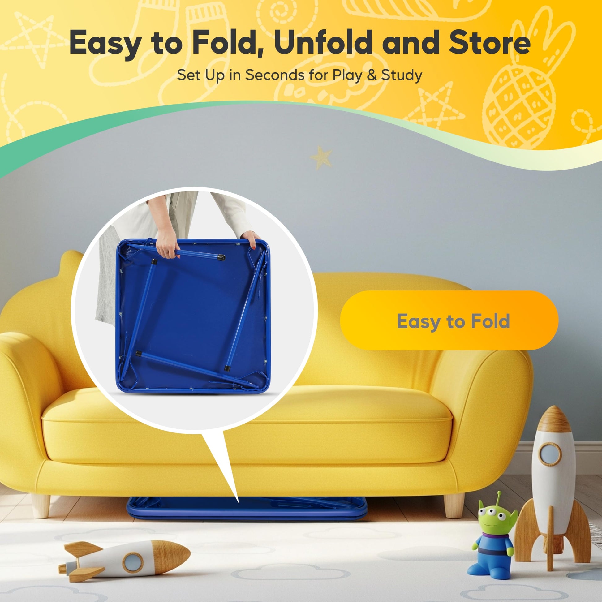 HealSmart Folding Table for Kids, Toddler Table with Padded Top - Foldable, Portable, and Durable Design, Ideal for Playtime, Crafts, and Activities, Compact and Easy Storage Solution, Blue