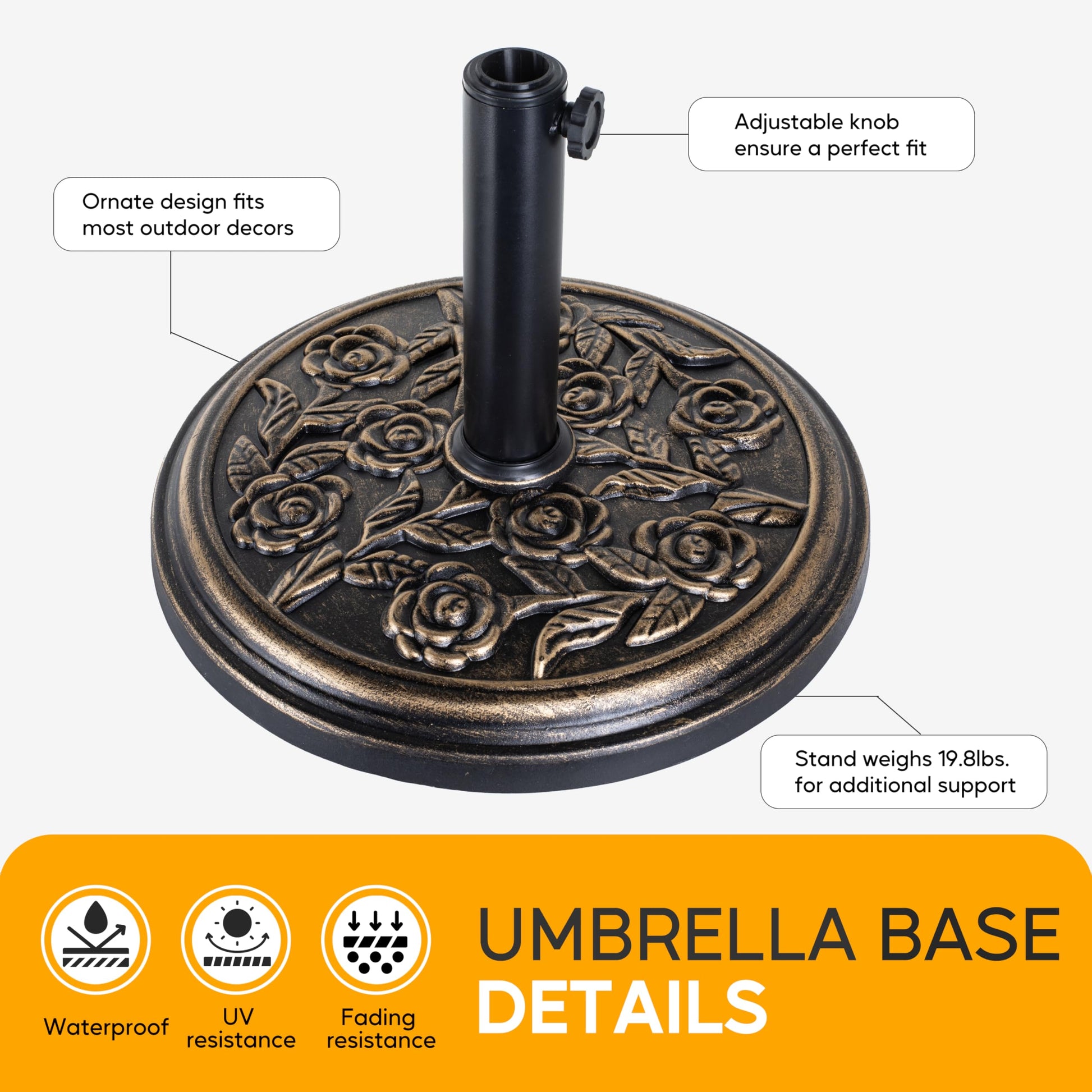 HealSmart Heavy Duty Round Stand Market Umbrella Base Holder for Patio, Outdoor, Deck, Lawn, Garden, Poolside, Bronze