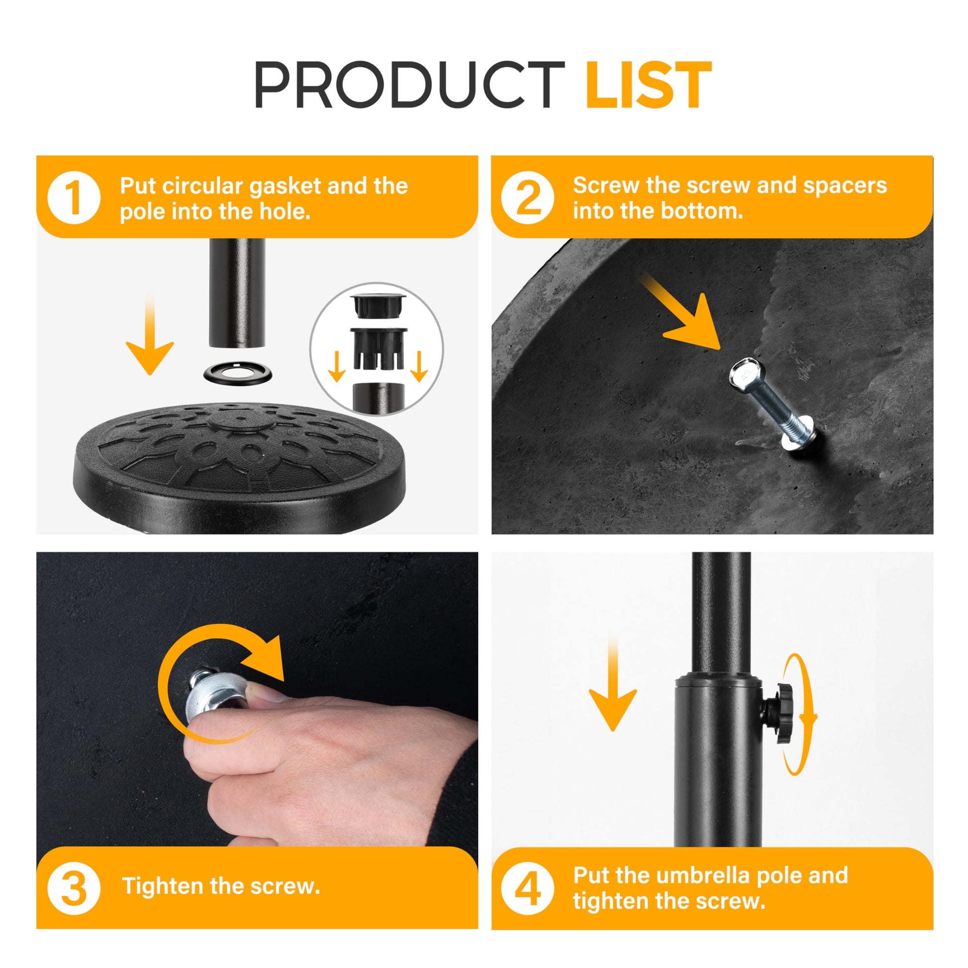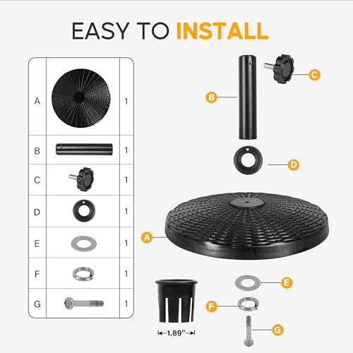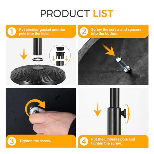 - Universal Fit for Most Umbrellas: Compatible with 6ft–10ft mid-column umbrellas, accommodating pole diameters of 1.38”, 1.49”, or 1.89”. The hand-turn knob ensures a tight grip for safety and stability in windy conditions.