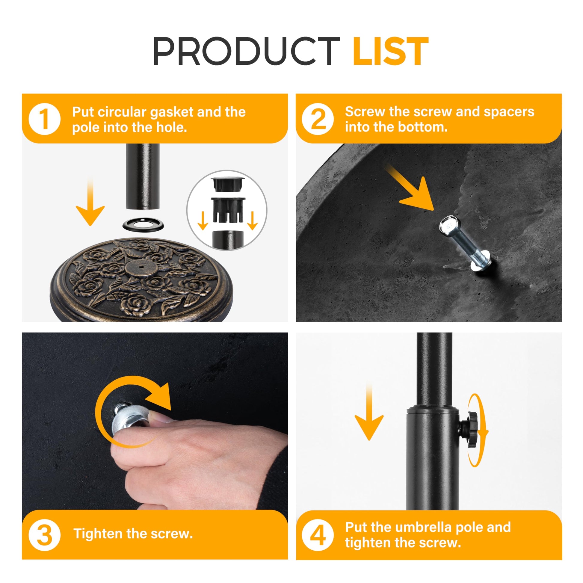 - Stylish Outdoor Elegance: Elevate your garden, patio, or terrace with intricately designed decorative patterns. This base complements umbrellas of all colors, blending perfectly into modern or classic outdoor setups.