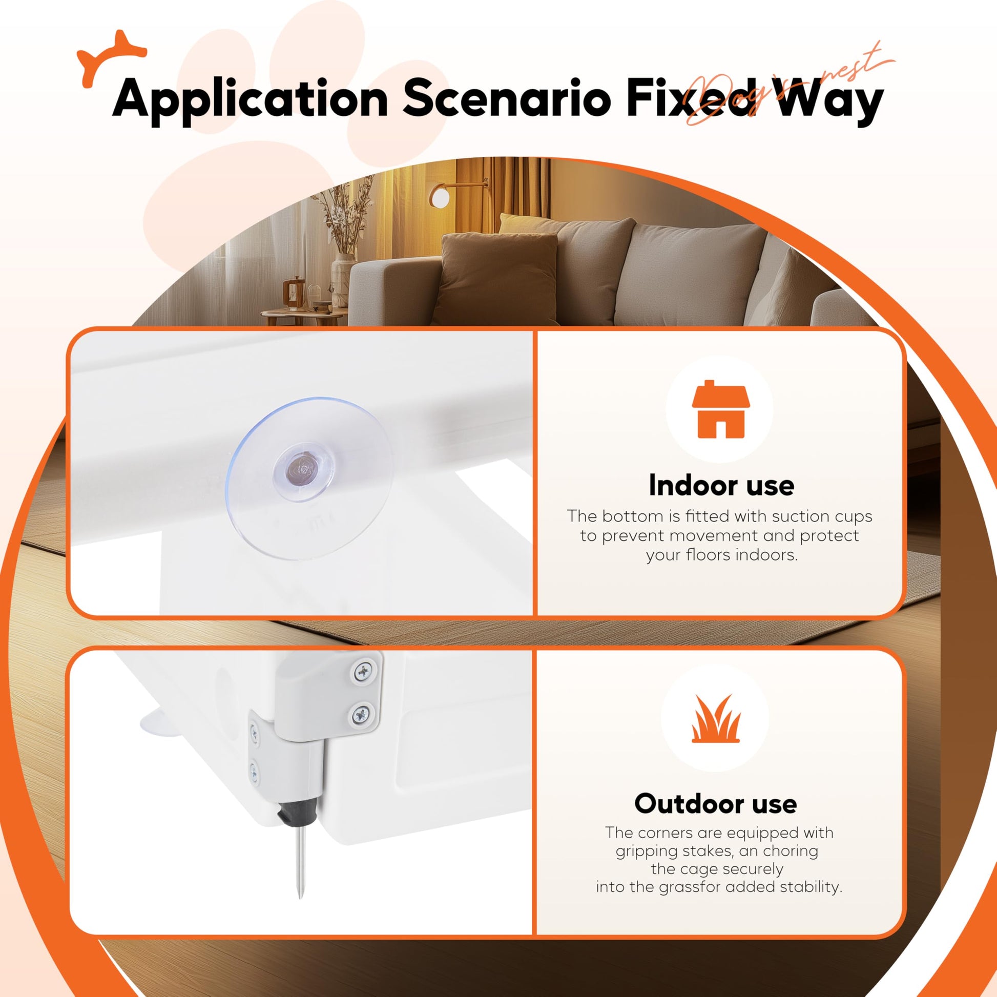 - 【Safety Design】: The upgraded design of the ground stakes with rounded tops provides protection for your pet's paws, ensuring more robust stability even when the pet is close. You can truly trust that your pet can move around safely within the enclosure.