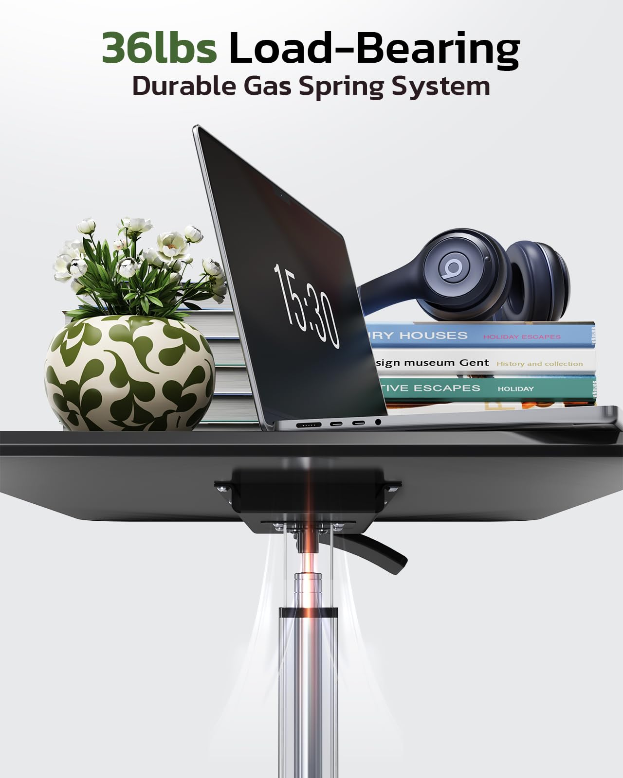 InfiniPower Mobile Small Standing Desk - Rolling Desk with Adjustable Height and Lockable Wheels, Sit-Stand Laptop Table, Portable Computer Workstation