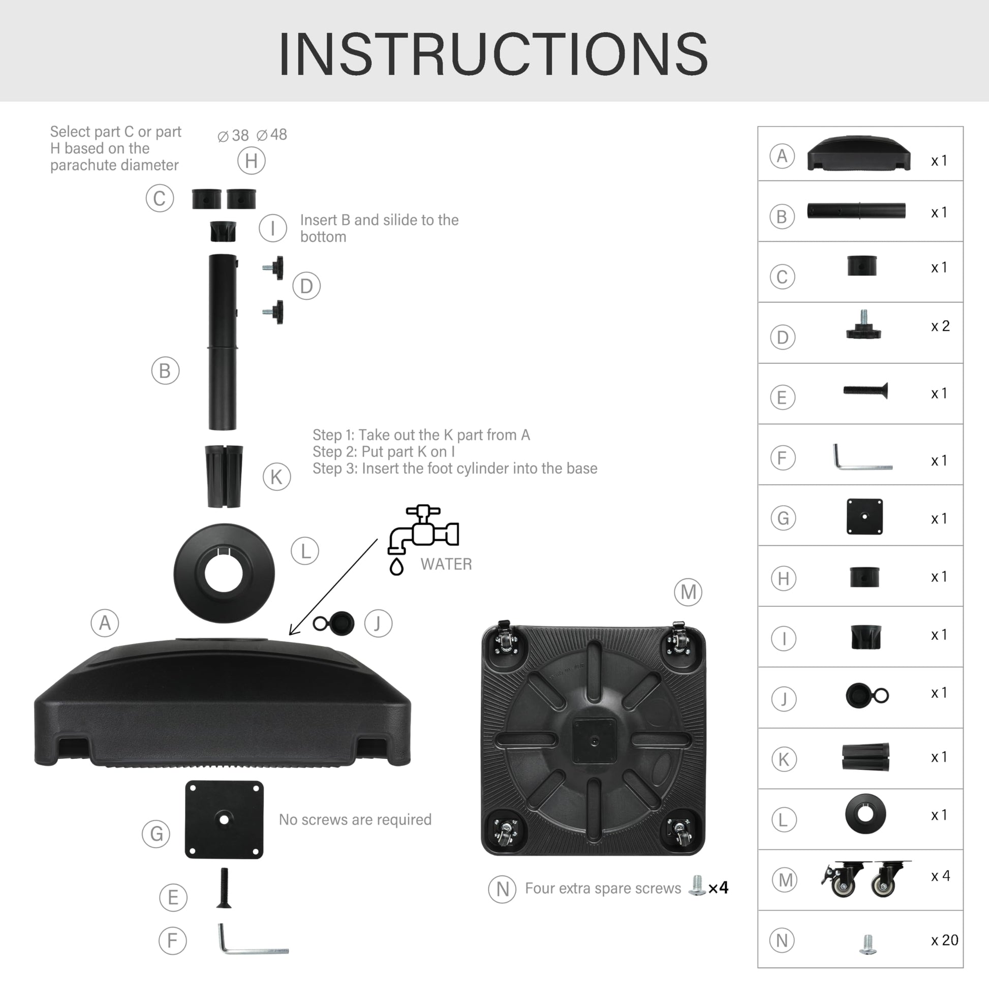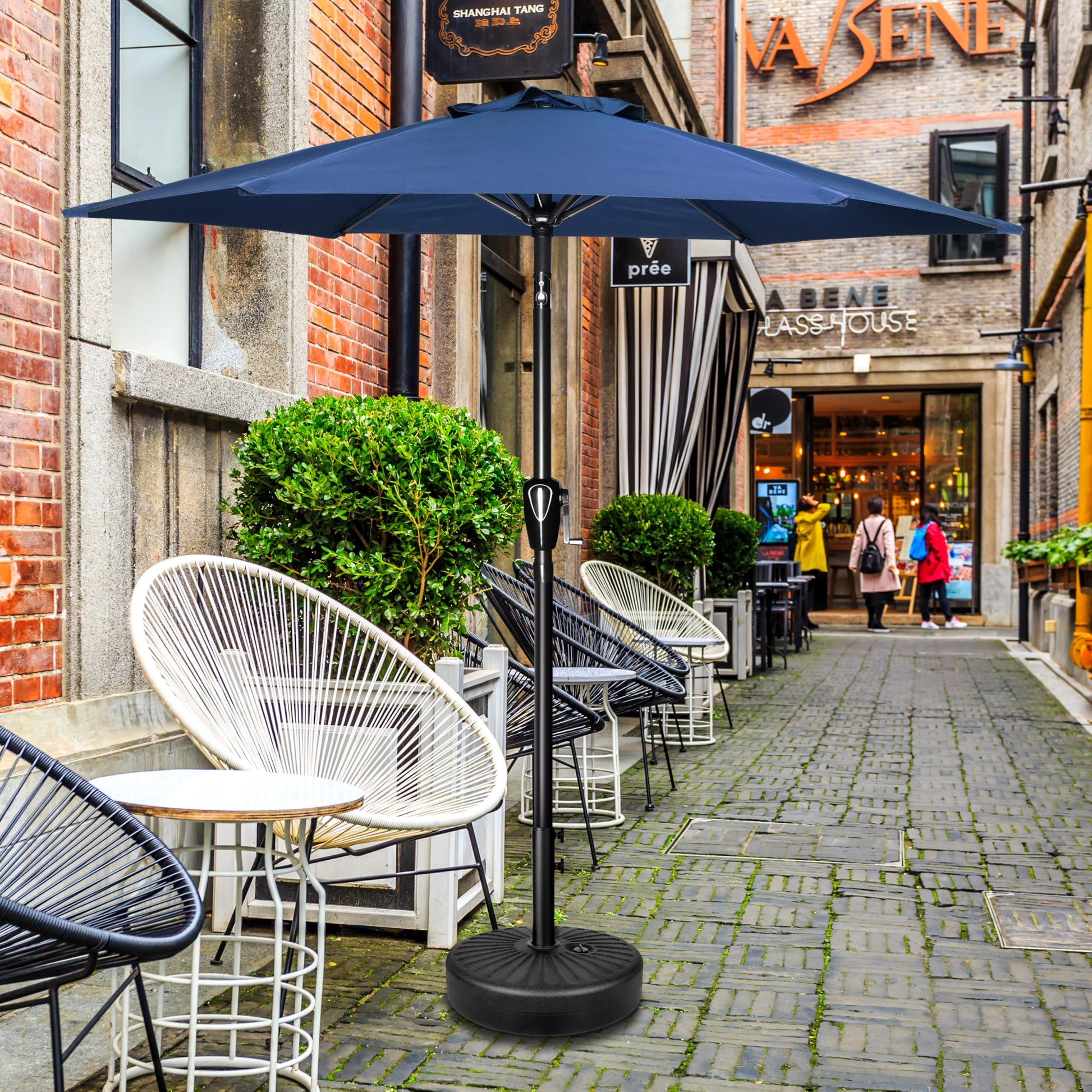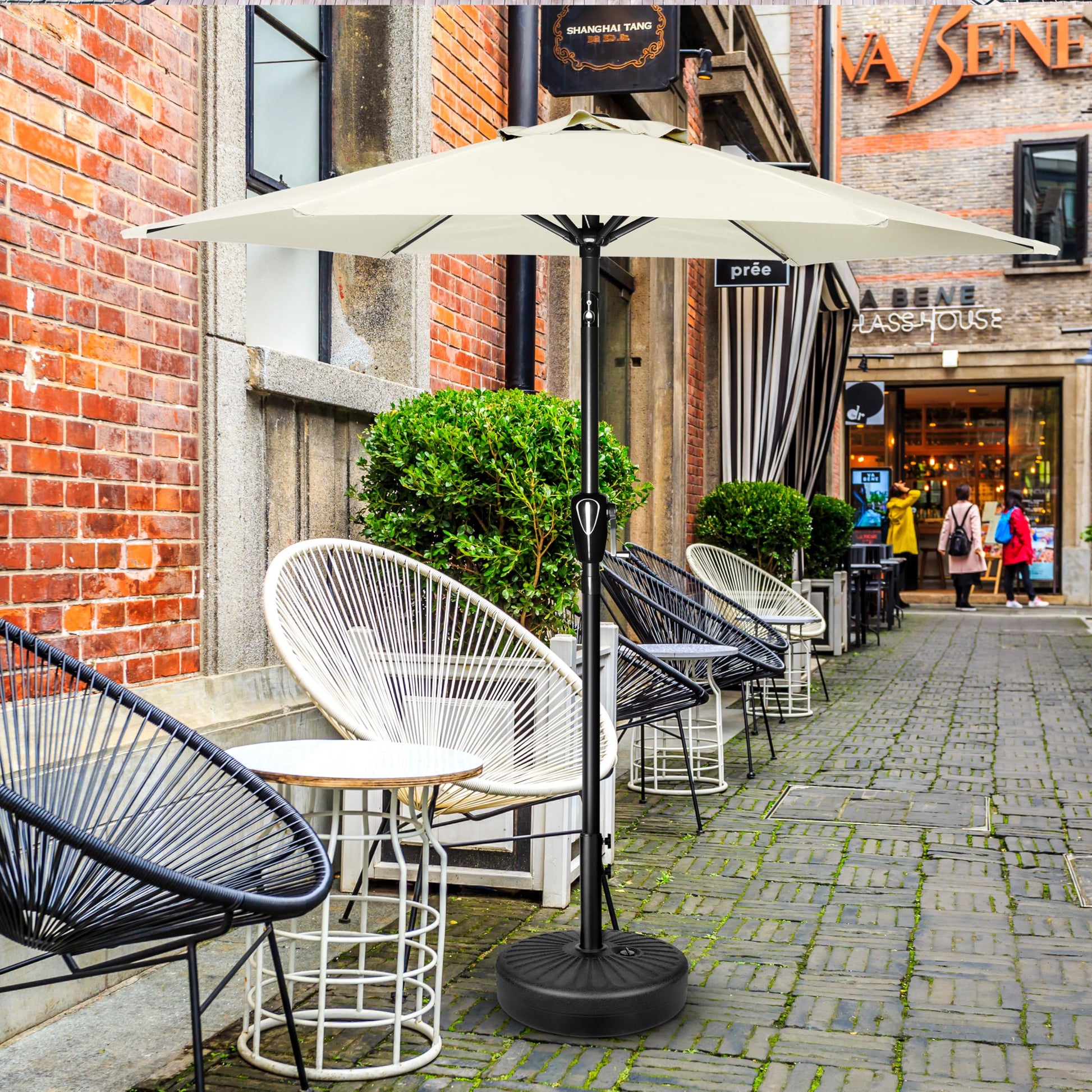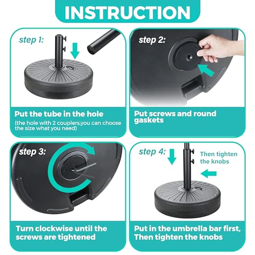 - Recommendation and Note: This umbrella must be secured with a weighted base(not included in this item). You can buy the InfiniPower umbrella base (ASIN:B0CSYBW53B) to match it or inserted onto a patio table.