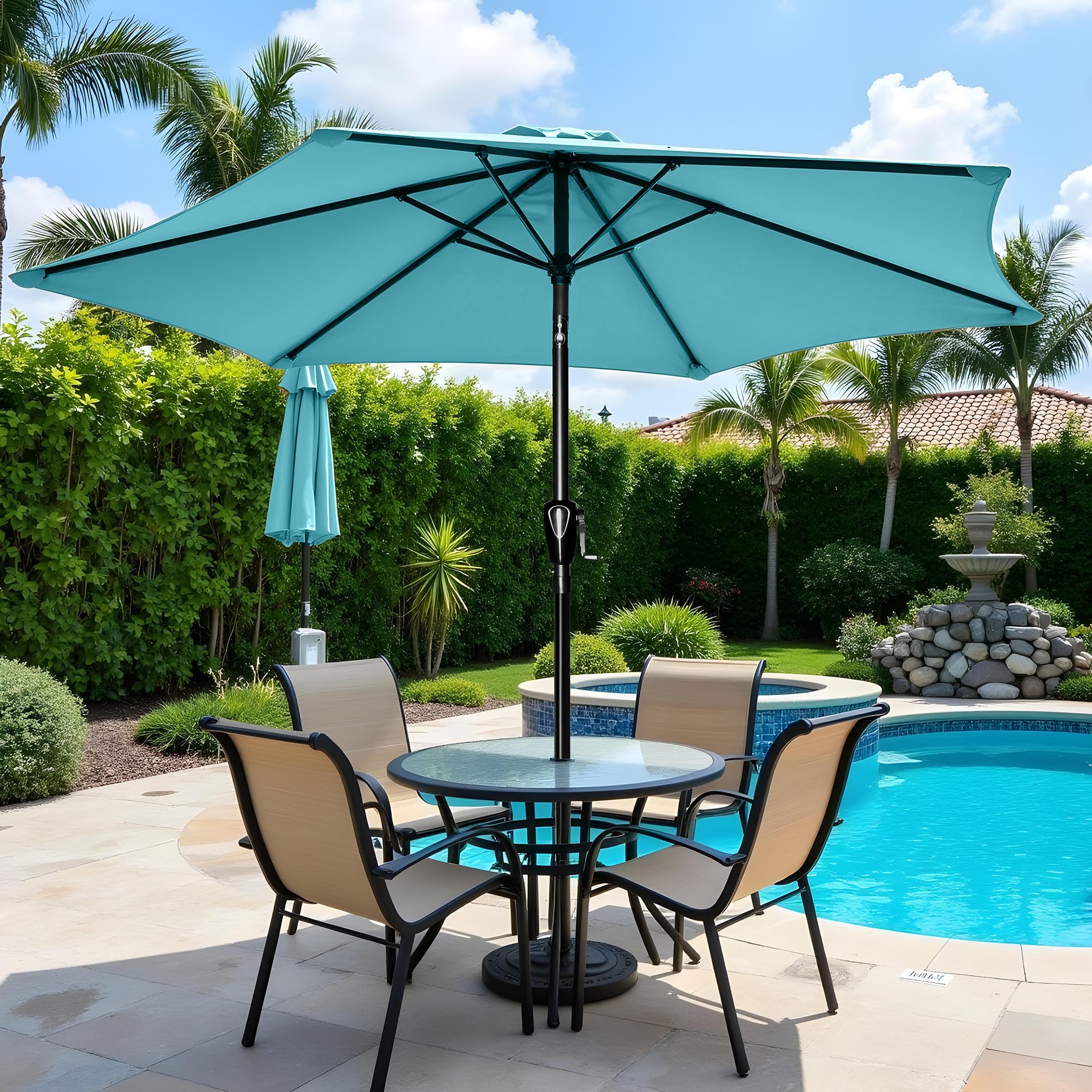 - Multi Application: 9 Feet diameter large umbrella shade better for market, garden, deck, backyard, pool and patio table. Wide enough to your 42" to 54" round, square or rectangle table with 4 to 6 chairs.