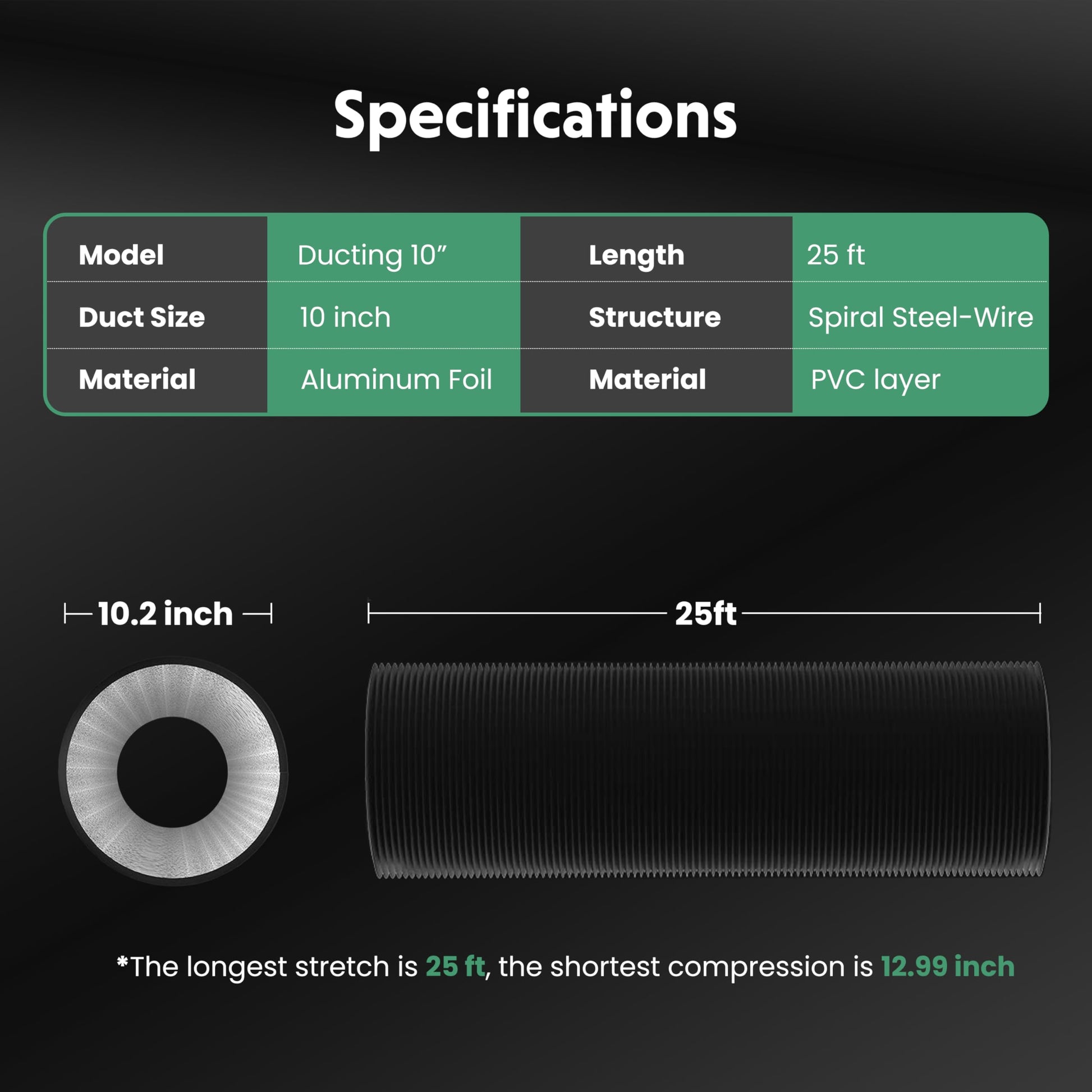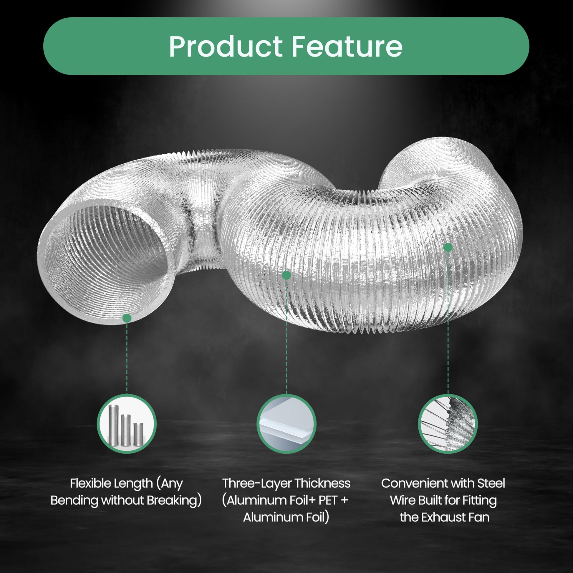 - Four-Layer Design: Ducting Four layer design keeps your ventilation system free of rips, our ducting is built with 3 layers of Aluminum foil with a layer of PET and steel wire helix, which makes it more durable and resistant to leaks, tears, and cuts.