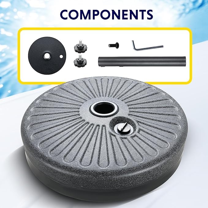 - Durable: Crafted from high-quality HDPE plastic, our patio umbrella base is exceptionally strong, corrosion-resistant, and built to last. For optimal use, we recommend pairing the base with a patio table for enhanced stability.