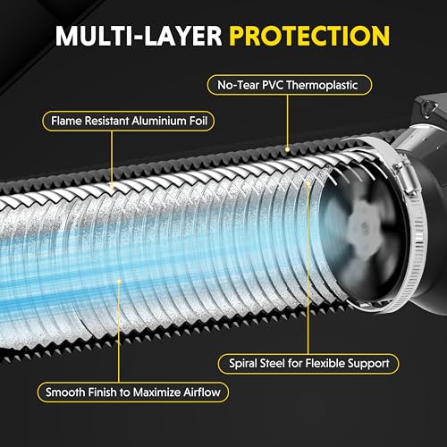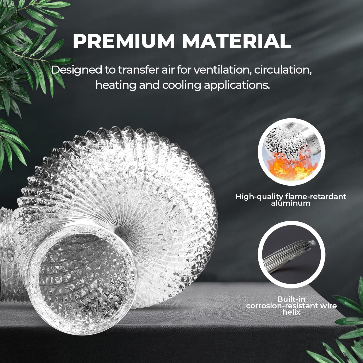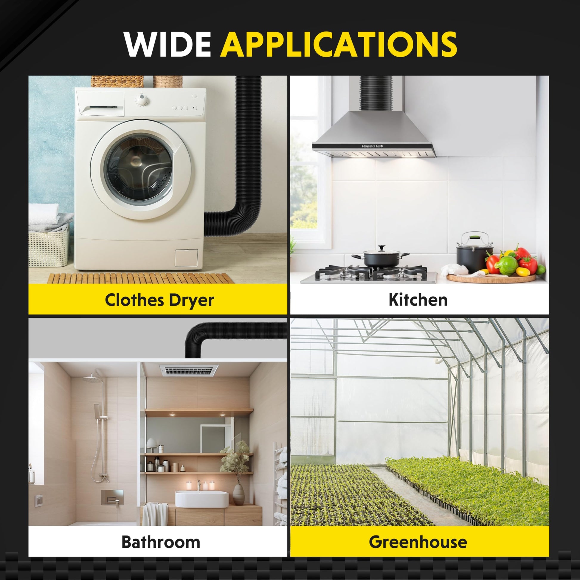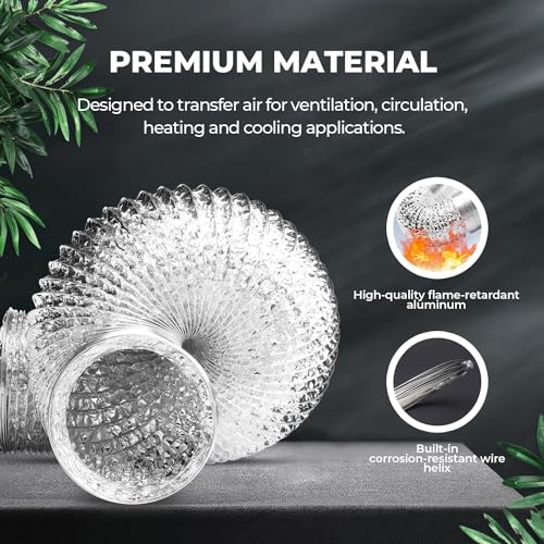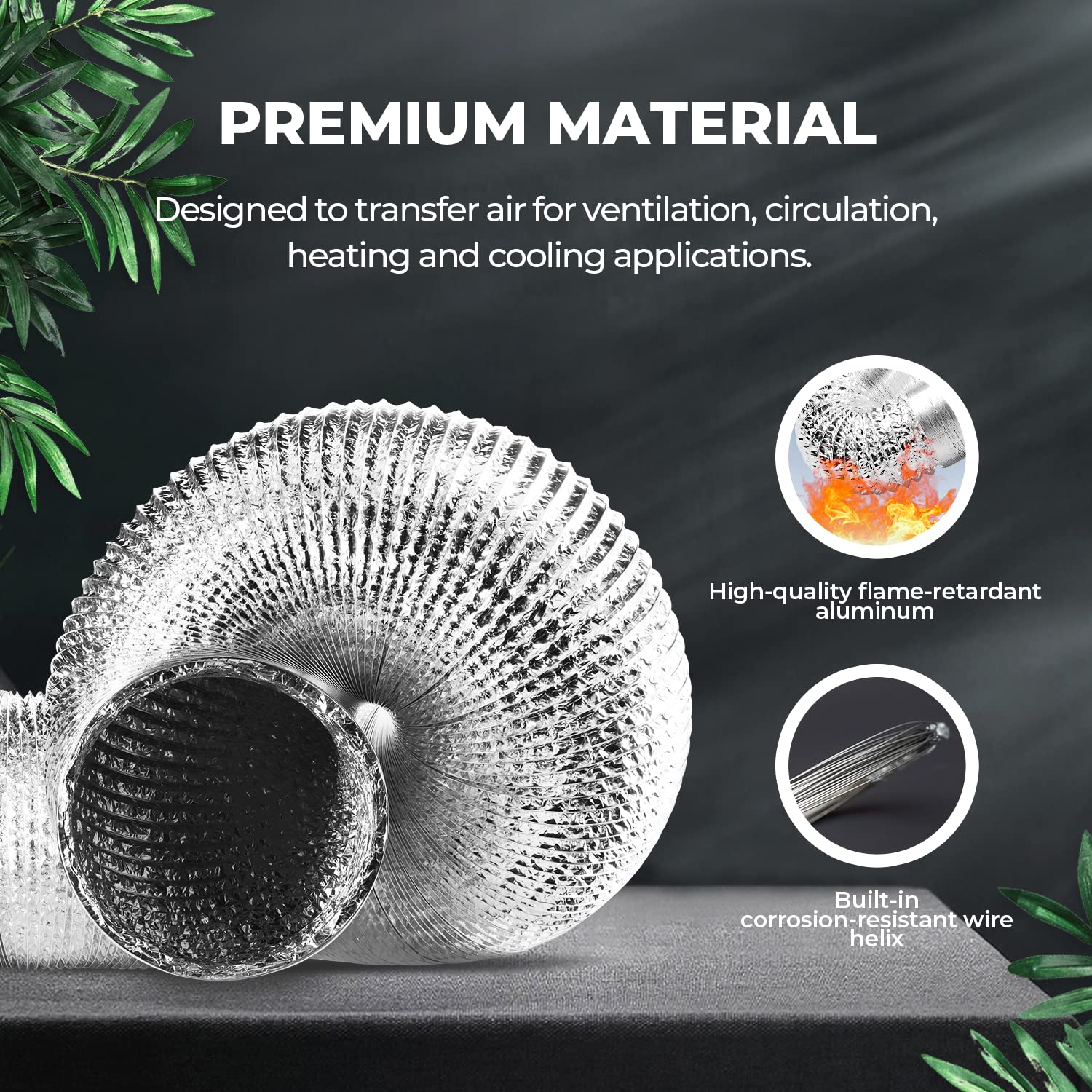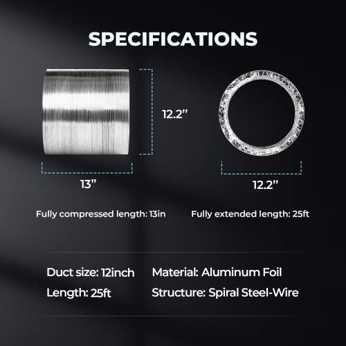 - Ducting feature: built-in steel wire for reinforcement and long lasting performance. Flexible length for inline fan; when not in use, it takes up little space.