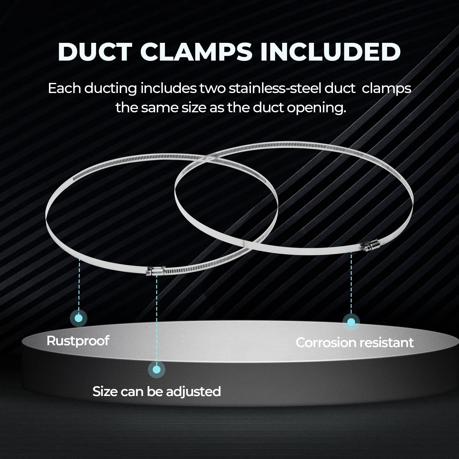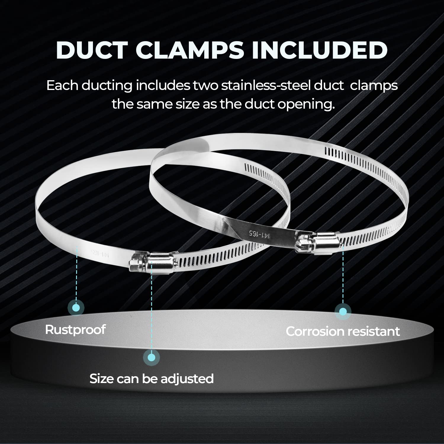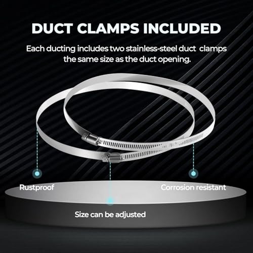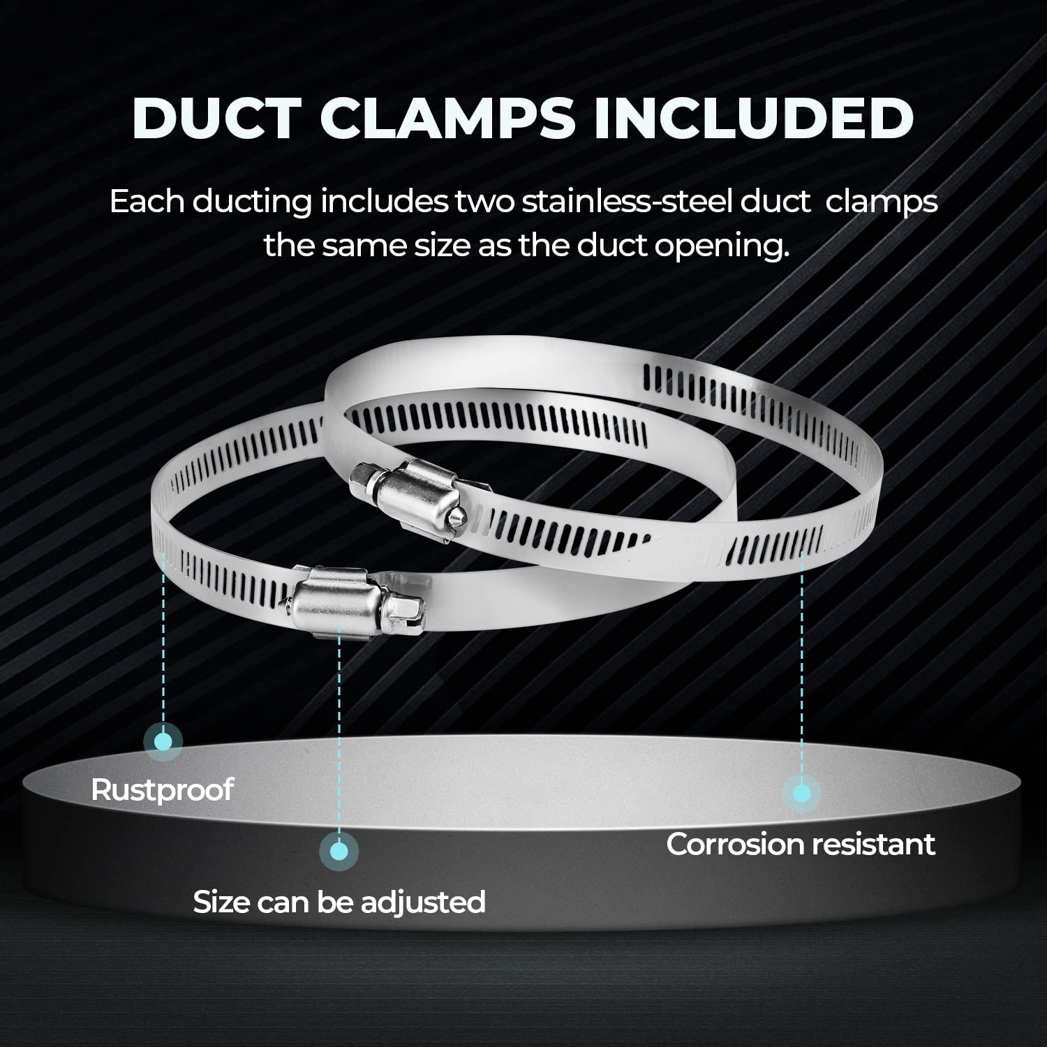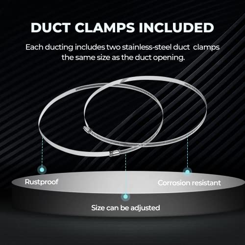 - Note: although the ducting is easy installation, violent installation is prohibited. With 1 pair of 14inch metal clamps made from stainless steel.