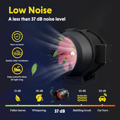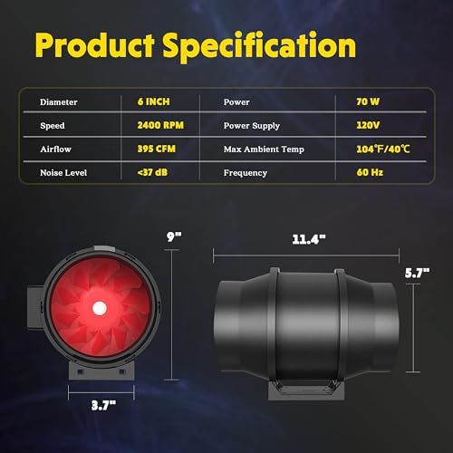 - Efficient Design: Lightweight and compact fan takes up minimal space and fits in any grow room. High-quality blades and efficient flow deflector increase airflow while realizing smooth, whisper-quiet operation.