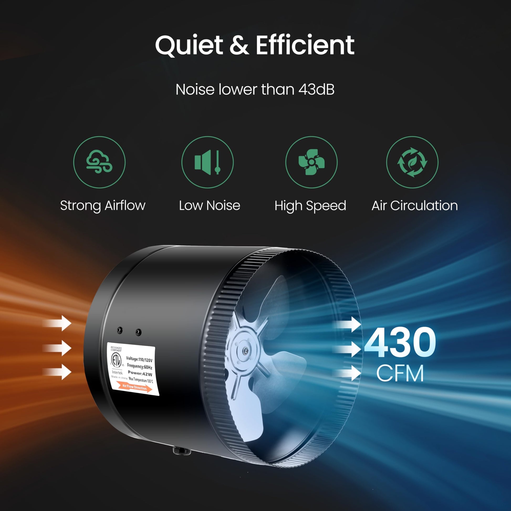 - Efficient: Inline bathroom exhaust fan with a diameter of 8 inches, speed of 3000 RPM and 430 CFM airflow, this air exhaust fan is lightweight enough for quich removal and easy installation in areas with little available space