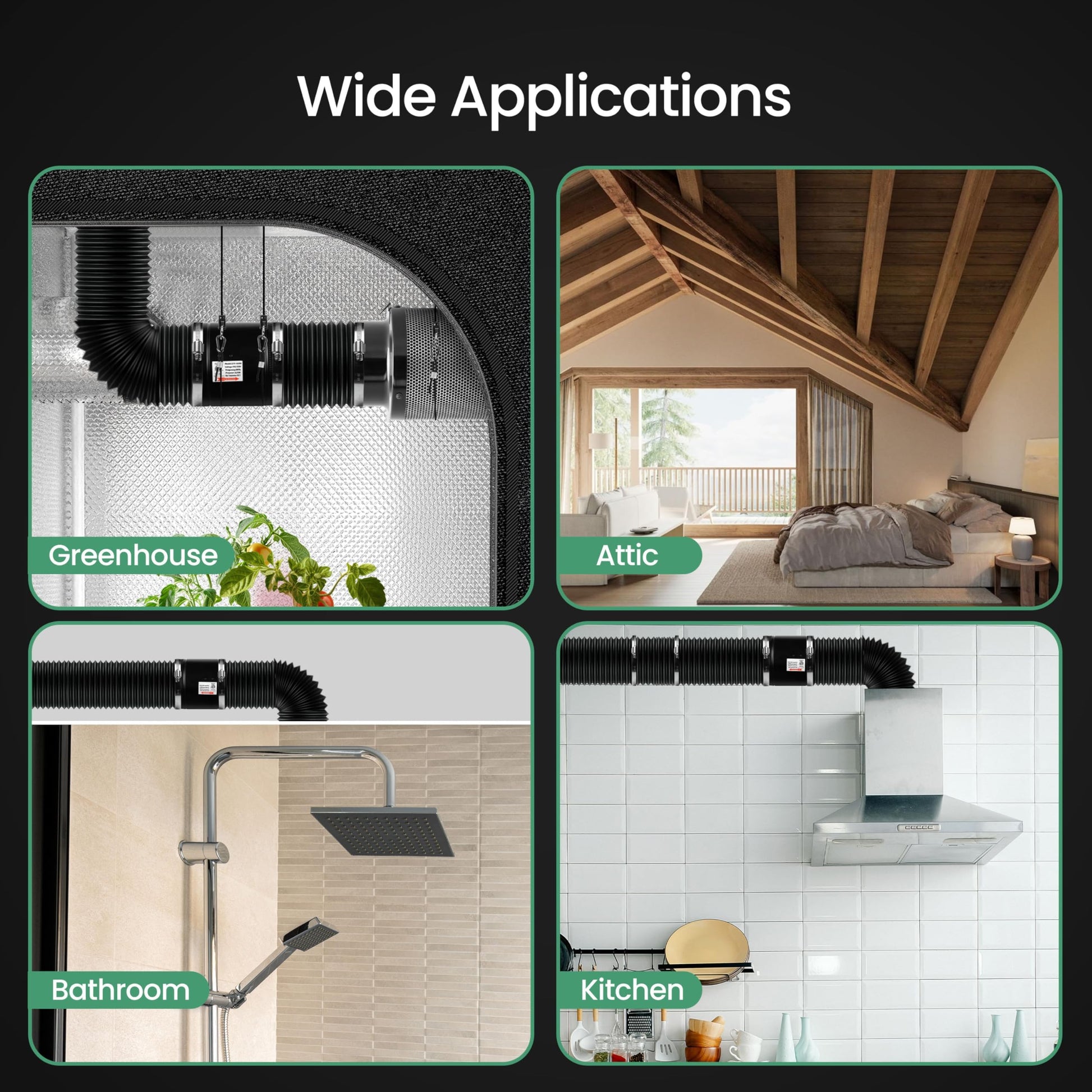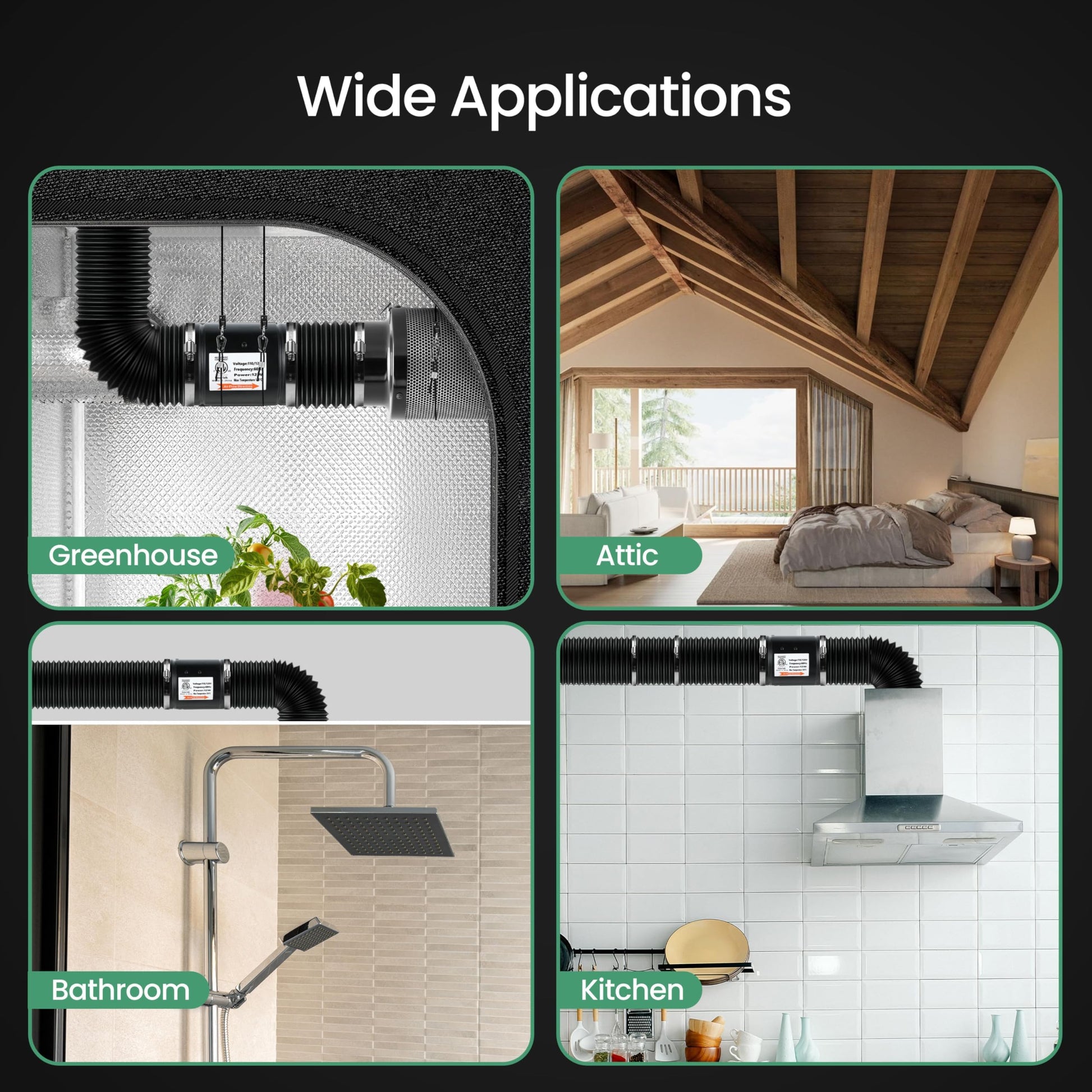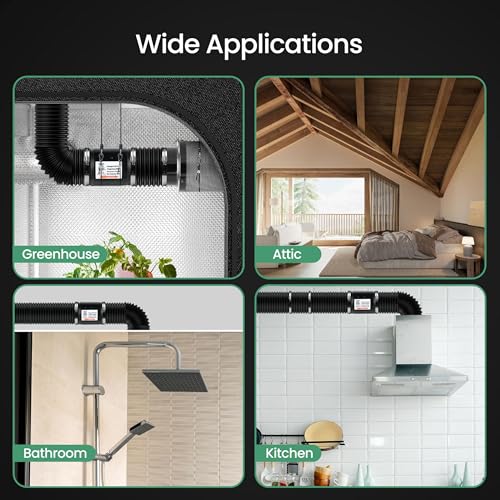 - Wide Applications: 8 round exhaust fan designed to boost airflow in HVAC systems, ventilate home spaces and use in grow tents as intake fans or exhaust fan. It can be used in bathrooms, kitchens, workshops, basements, attics and etc