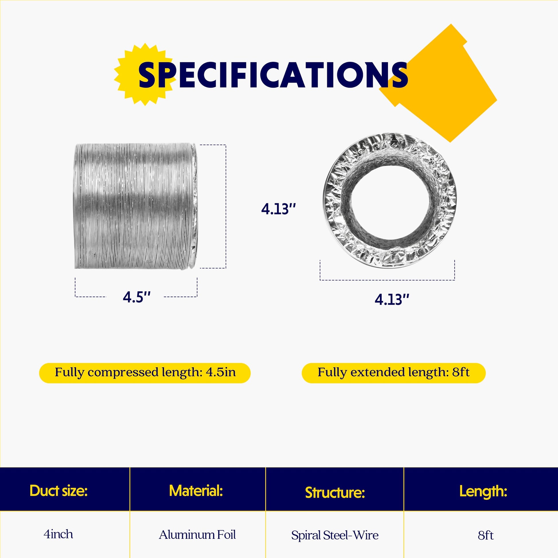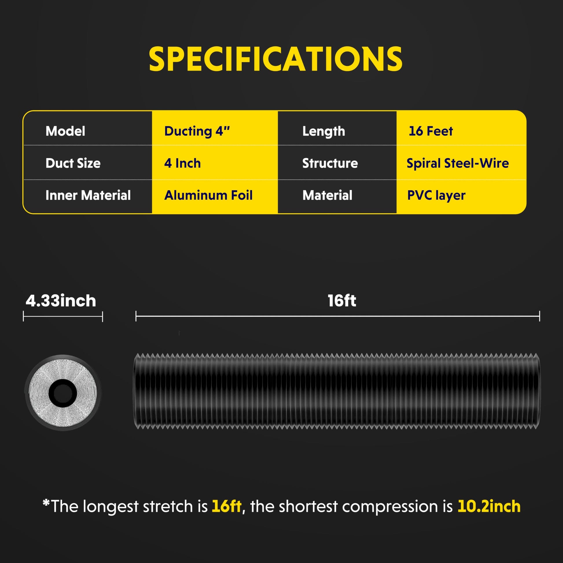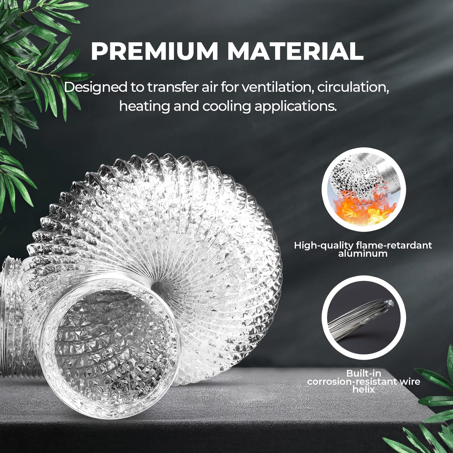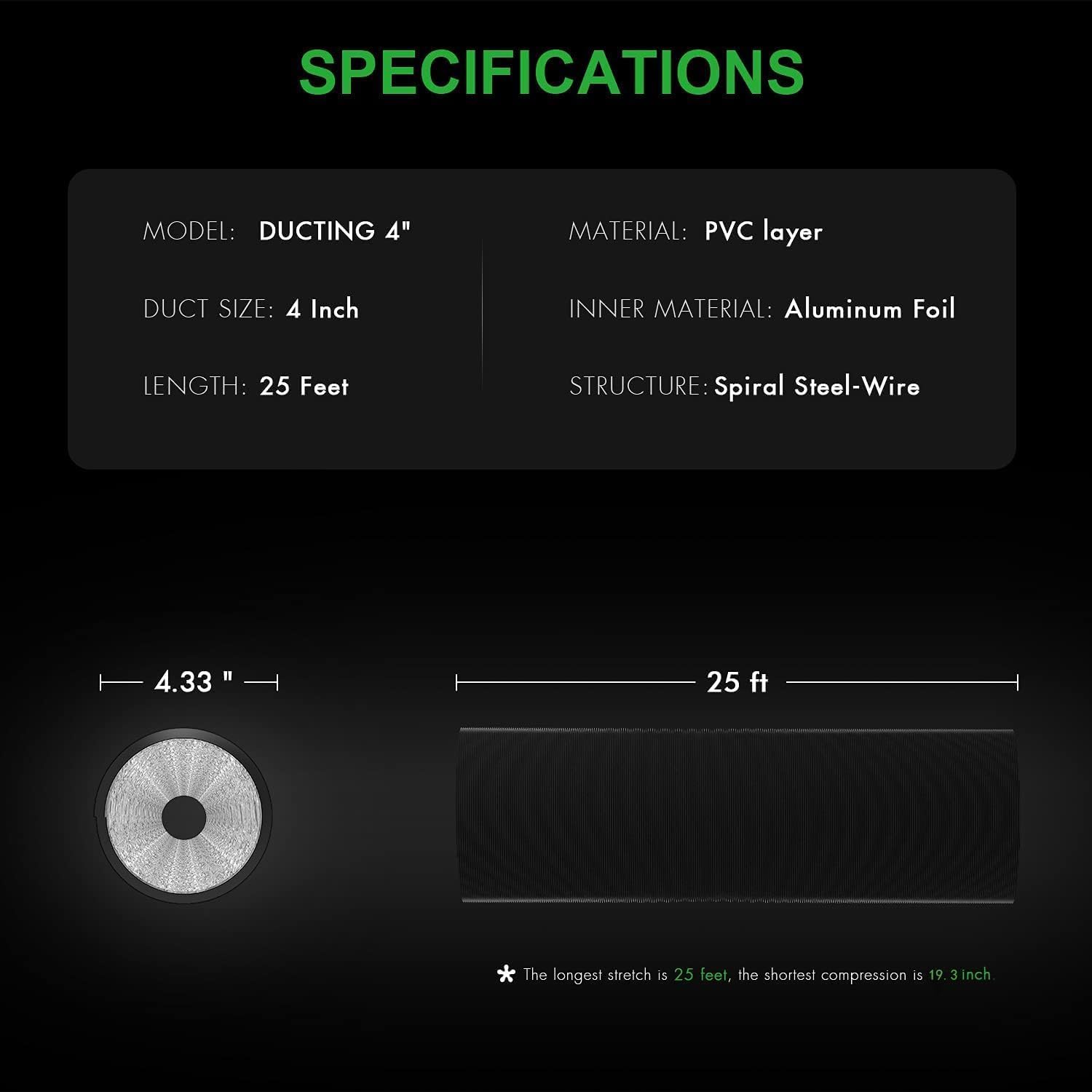 - High-Quality Materials: Use high-quality aluminum foil, resistant to high temperatures and corrosion, with long lifespan. The outer layer has a thick layer of polyvinyl chloride to prevent light leakage, and comes with a pair of 6-inch stainless steel pipe clamps
