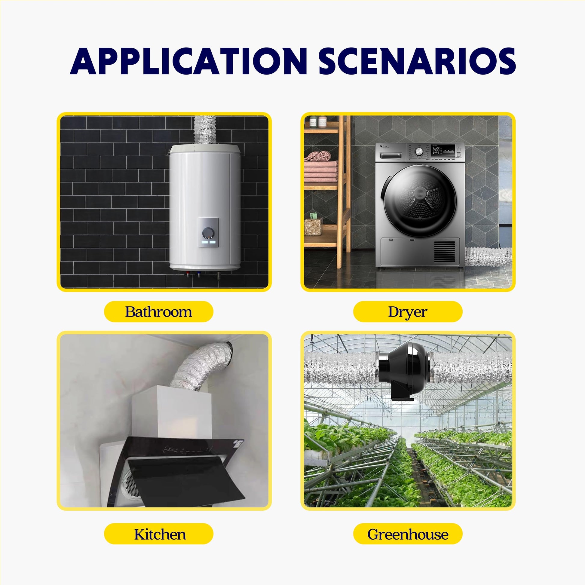 - Multiple Applications: Suitable for HVAC ventilation, air circulation in planting sheds, greenhouse and planting room ventilation, exhaust and intake in kitchens and bathrooms