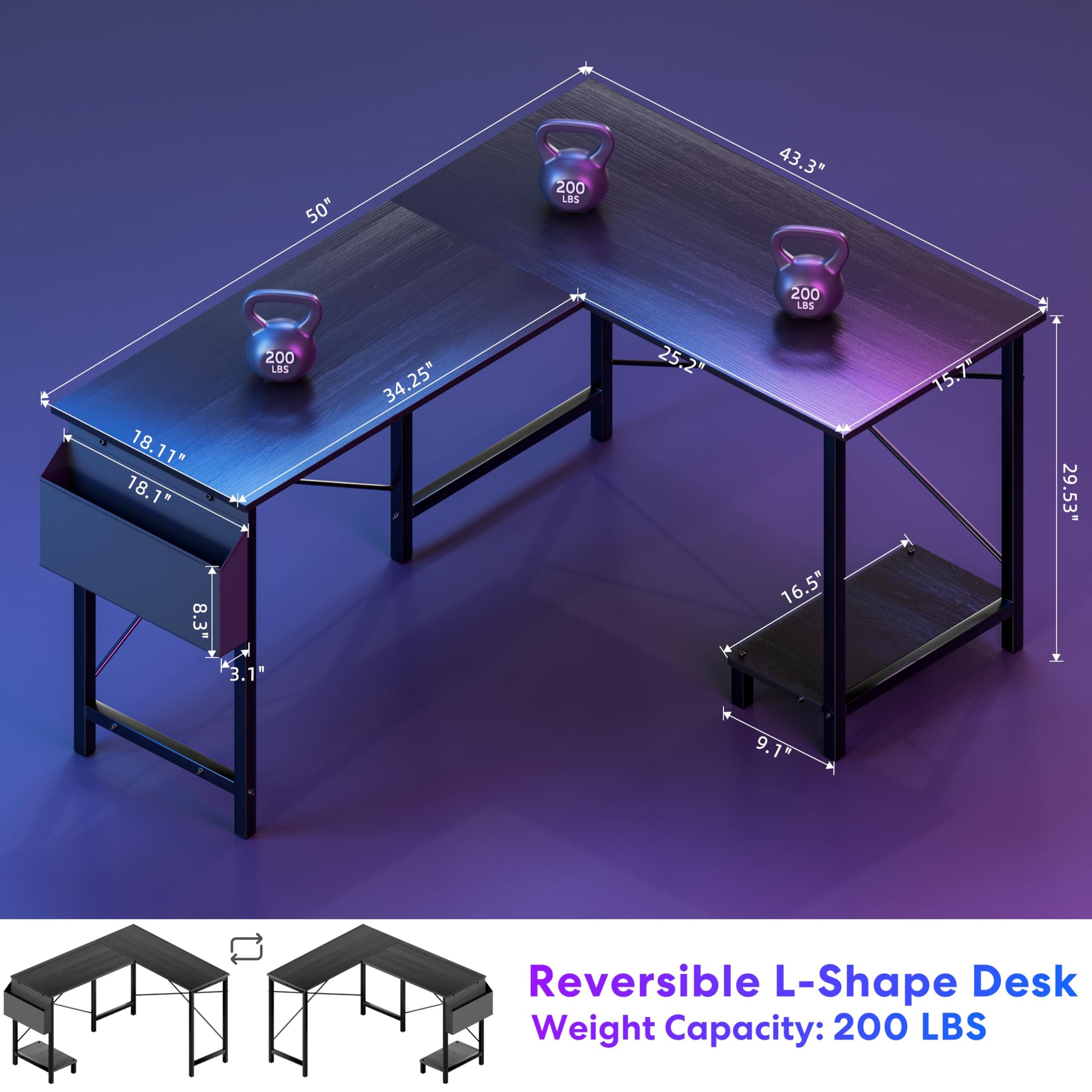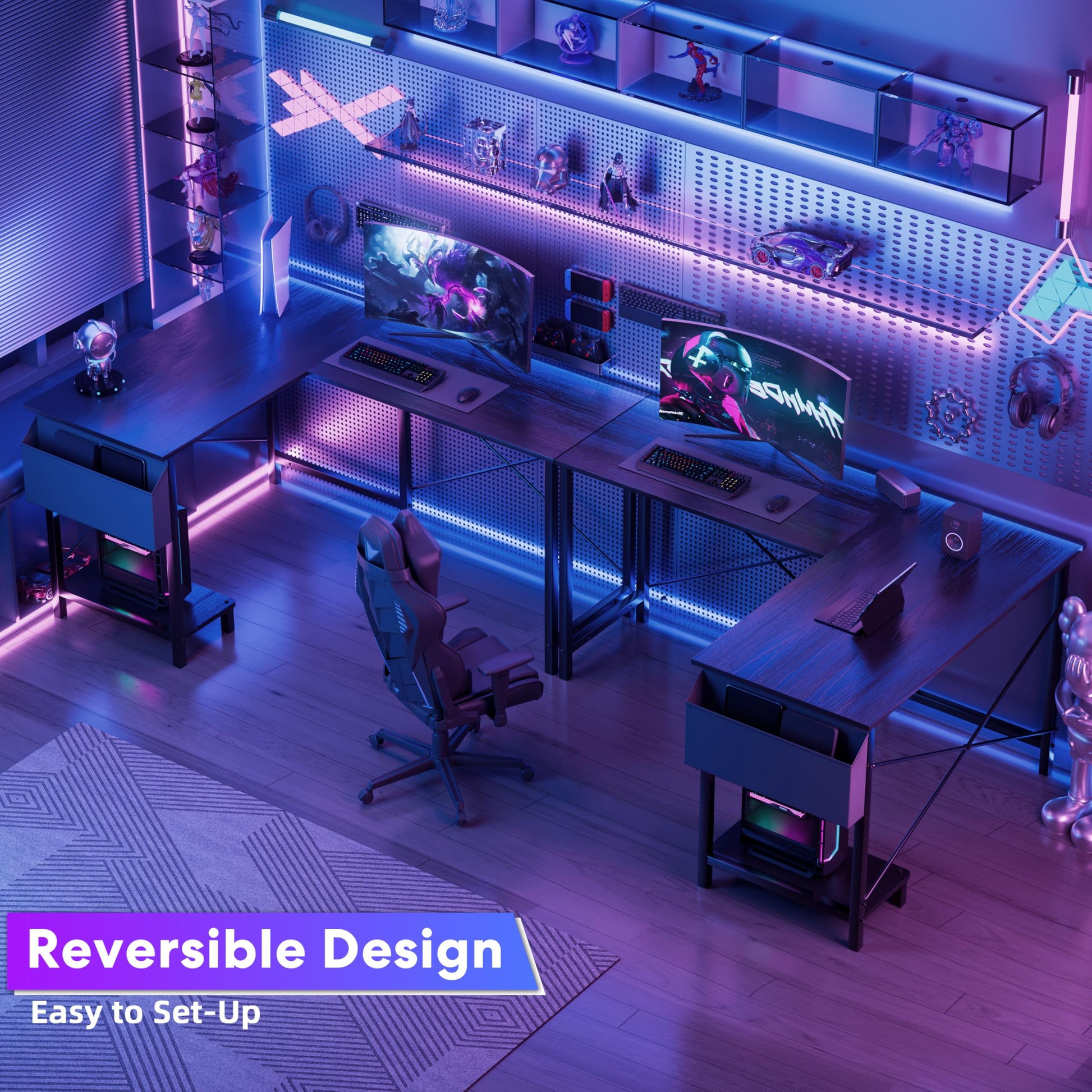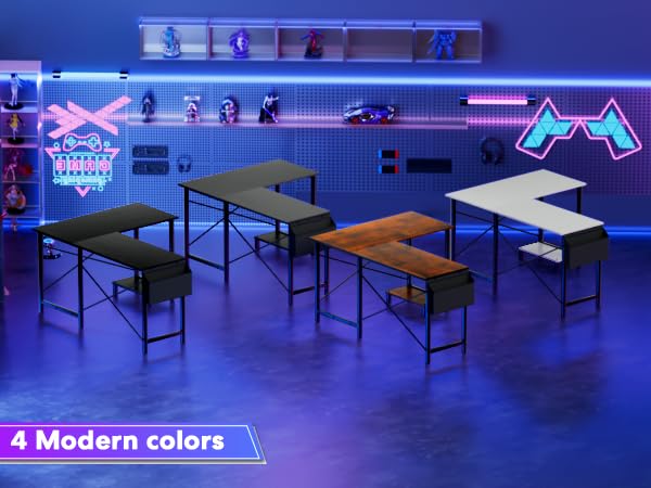 Miibox 50" L Shaped Gaming Desk with Reversible Corner - Home Office Computer Desk with Wood Top, Metal Frame, CPU Stand & Storage Bag for Small Space, Gaming Room