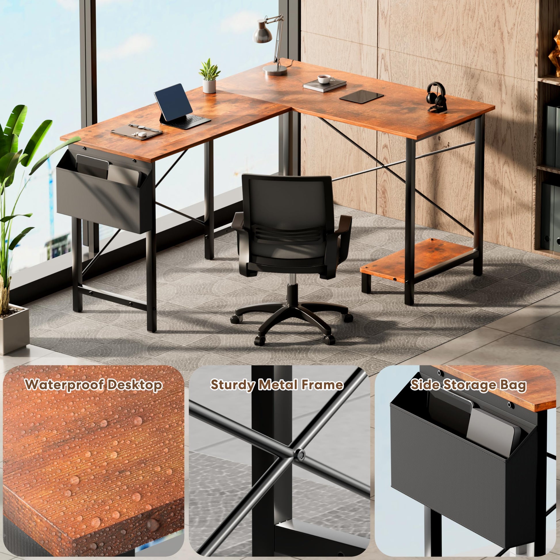 Miibox 50" L Shaped Gaming Desk with Reversible Corner - Home Office Computer Desk with Wood Top, Metal Frame, CPU Stand & Storage Bag for Small Space, Gaming Room