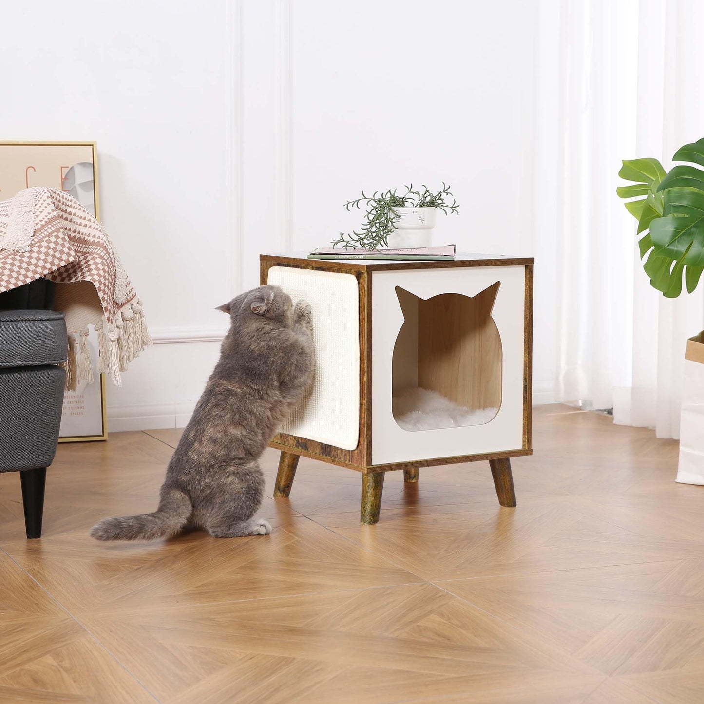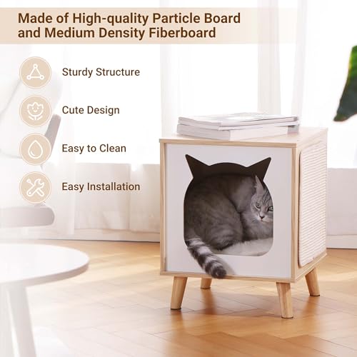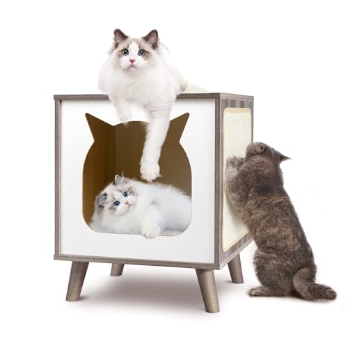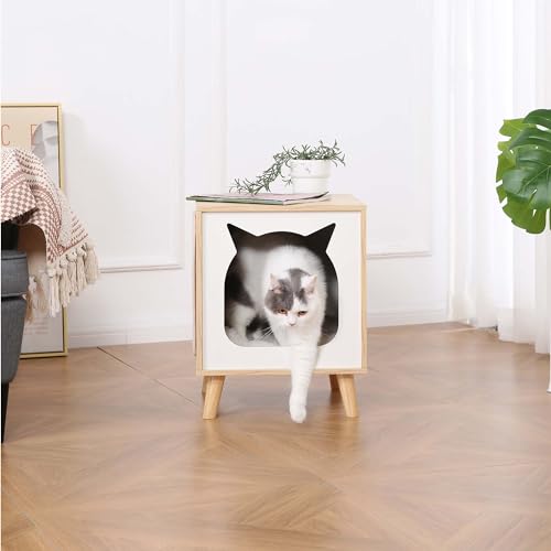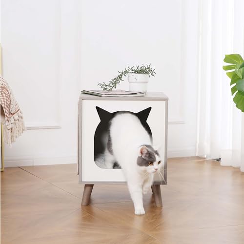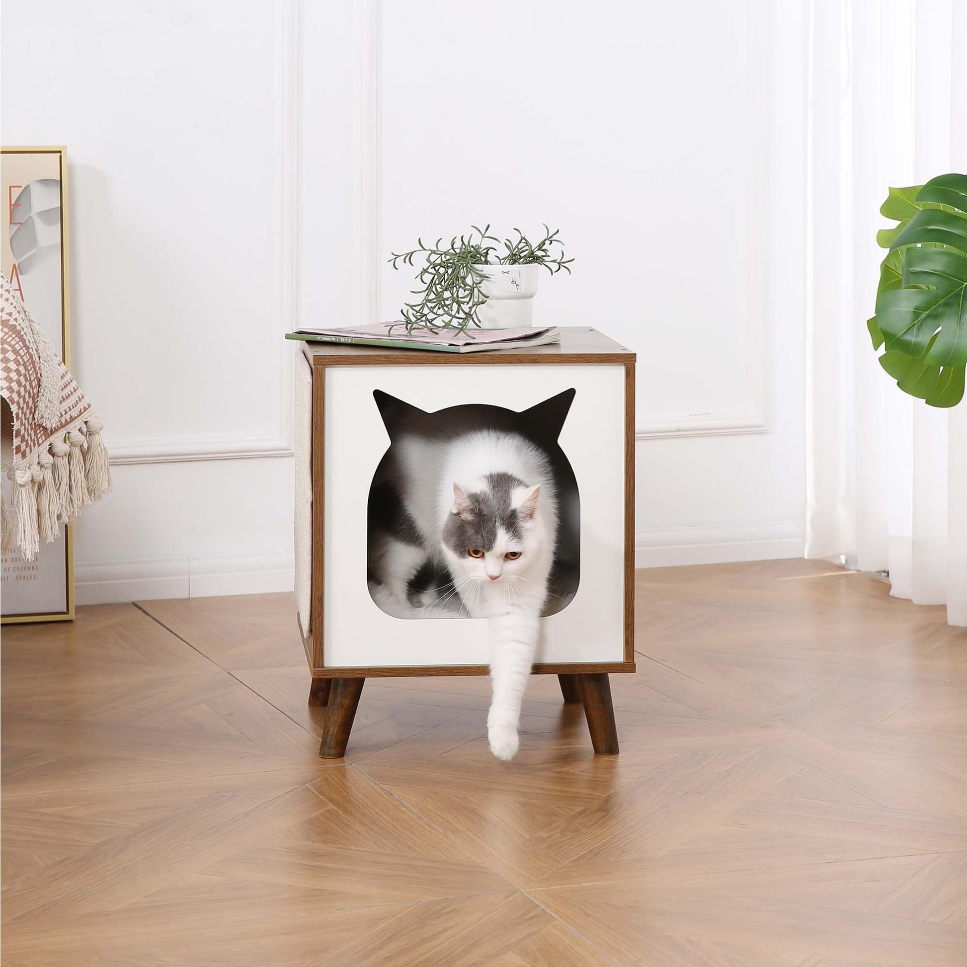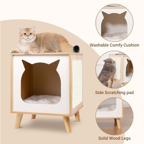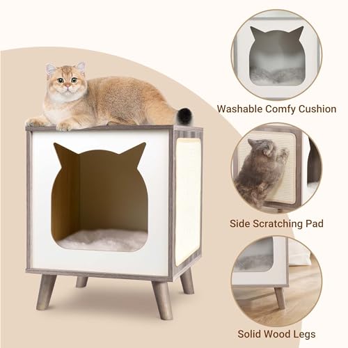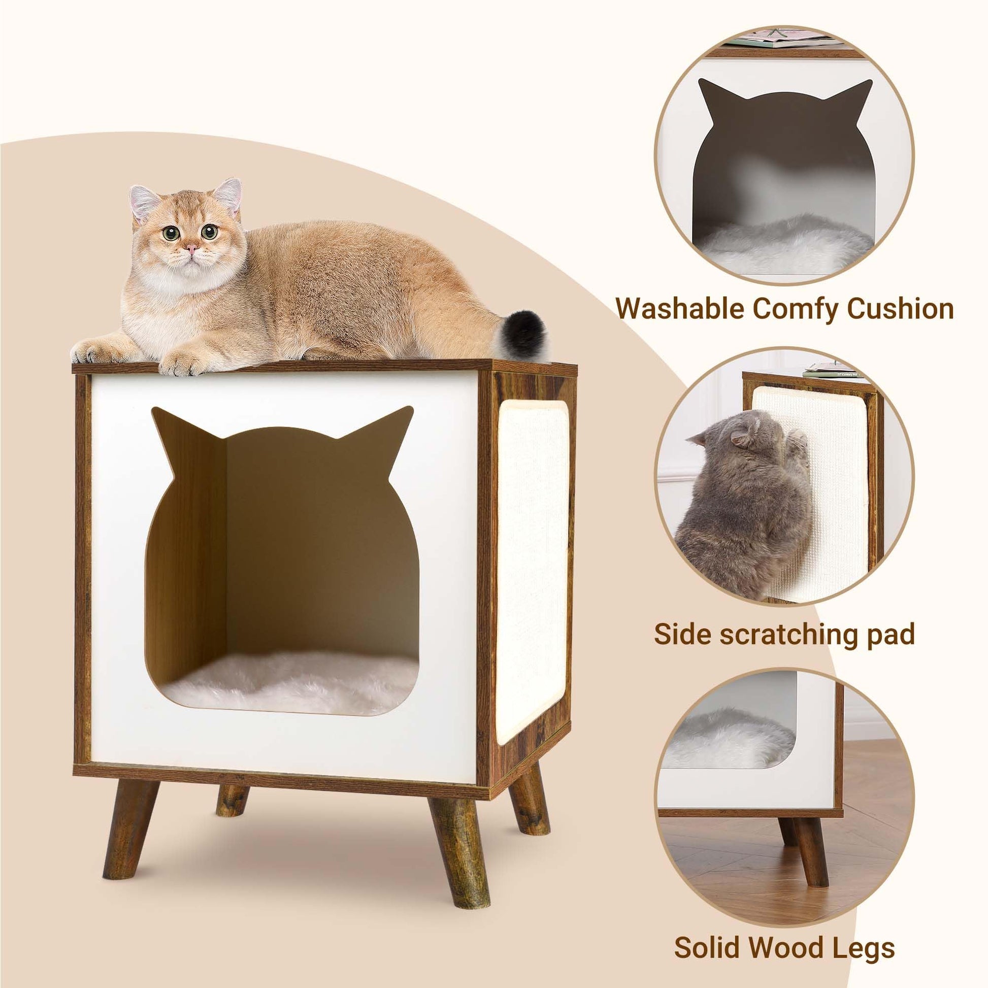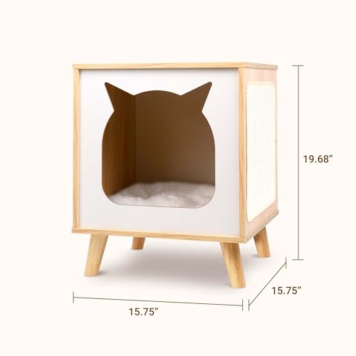- 【Sturdy Wooden Cat House】MDF (medium density fiberboard) square base with solid wood stands, stable and easy to fit seamlessly into the living room, bedroom, study, or any room in your home.