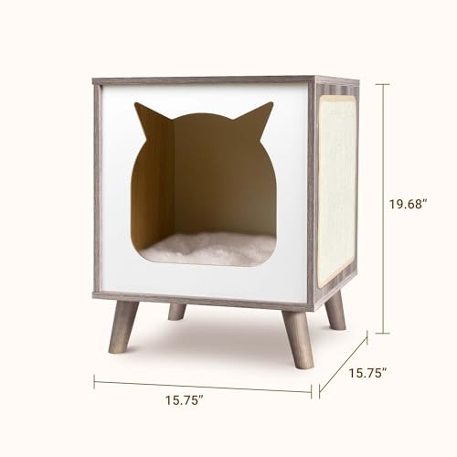 - 【Cat House Size】 15.75“L x 15.75”W x 19.68"H, suitable for both small and large cats up to 25 lbs. Antique brown, antique gray and natual colors are availale.