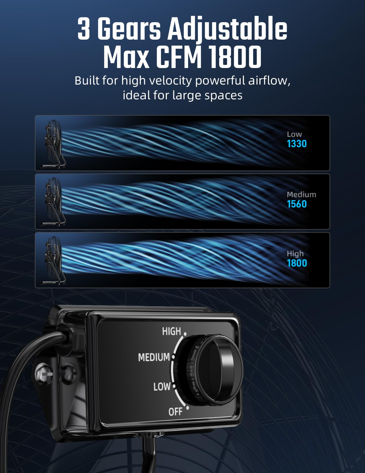 - 3 speed high-torque, permanently lubricated motor with 3-speed rotary switches help you for different airflow.