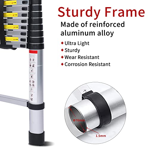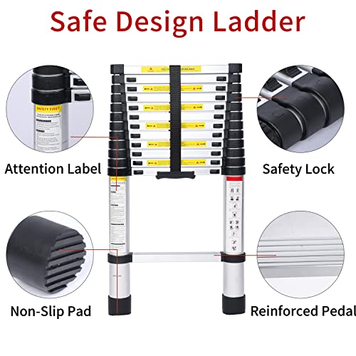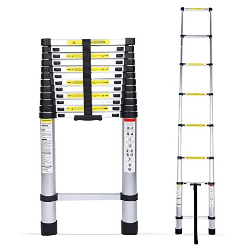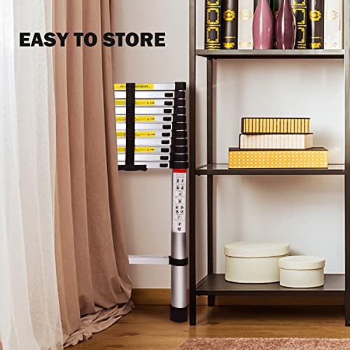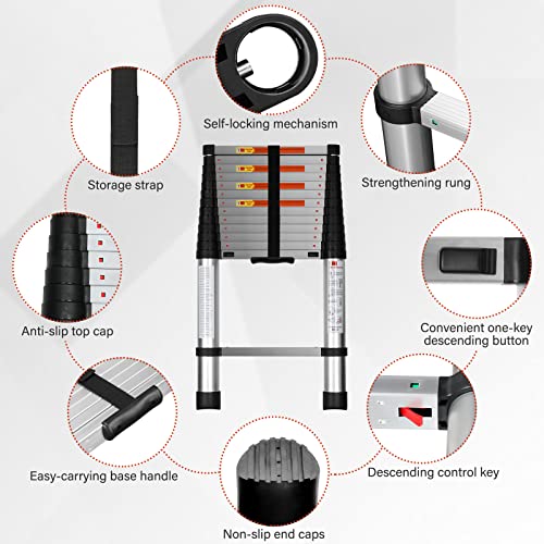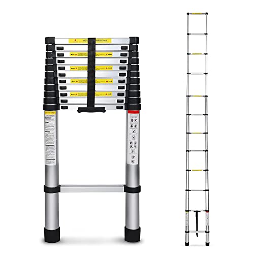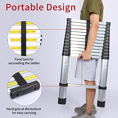 - Portable & compact: The aluminum telescoping ladder can be retracted to about a quarter of its height. By using the heavy-duty securing strap, you can carry the ladder with one hand. Lightweight, compact, convenient and space-saving to store it