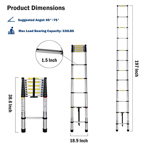 - Premium materials: The ladder is made of corrosion-resistant aluminum alloy with anodized finish. Plastic parts are reinforced with nylon fiber which ensures a long service life. Height max: 10.5 FT; Weight capacity: 330lbs, Don't stand at the top
