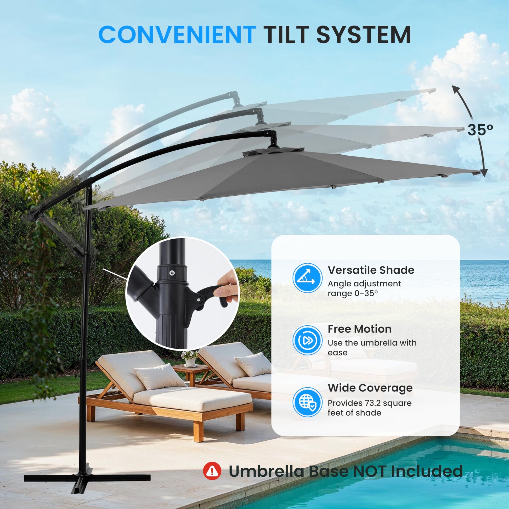 - Perfect Patio Décor: Our cantilever umbrellas is perfect for outdoor dining tables and more patio furniture sets, provide you with a shade and protection that can keep you cool and comfortable outside. But also an excellent decoration for your patio