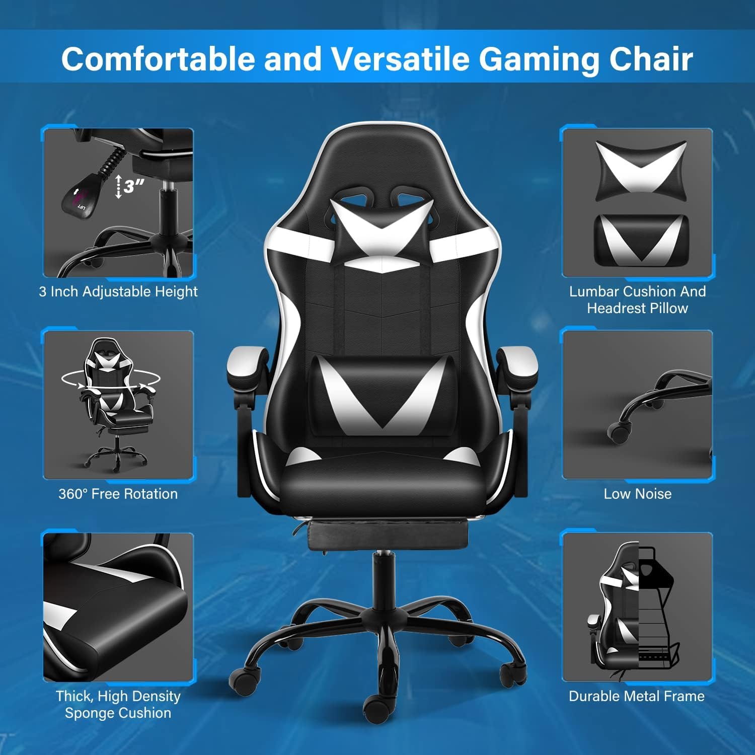 Gaming Chair with Footrest, Big and Tall Gamer Chair, Racing Style Adjustable Swivel Office Chair, Ergonomic Video Game Chairs with Headrest and Lumbar Support