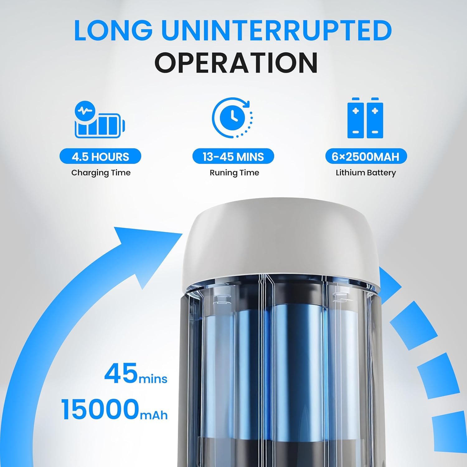 - Long Battery Life with 3 Modes: Equipped with a 2500mAh removable battery, it offers up to 45 minutes of runtime (Eco mode) and adapts to needs with 3 suction modes—Clean your whole home without stopping.