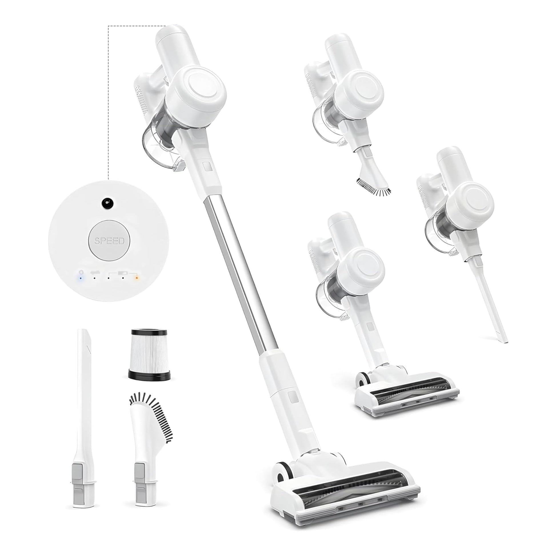- Powerful Cordless Cleaning: The cordless vacuum features a 250W motor delivering 24,000 Pa suction and a motorized brush for deep floor cleaning. Lightweight and easy to move, it works on carpets, floors, and more.