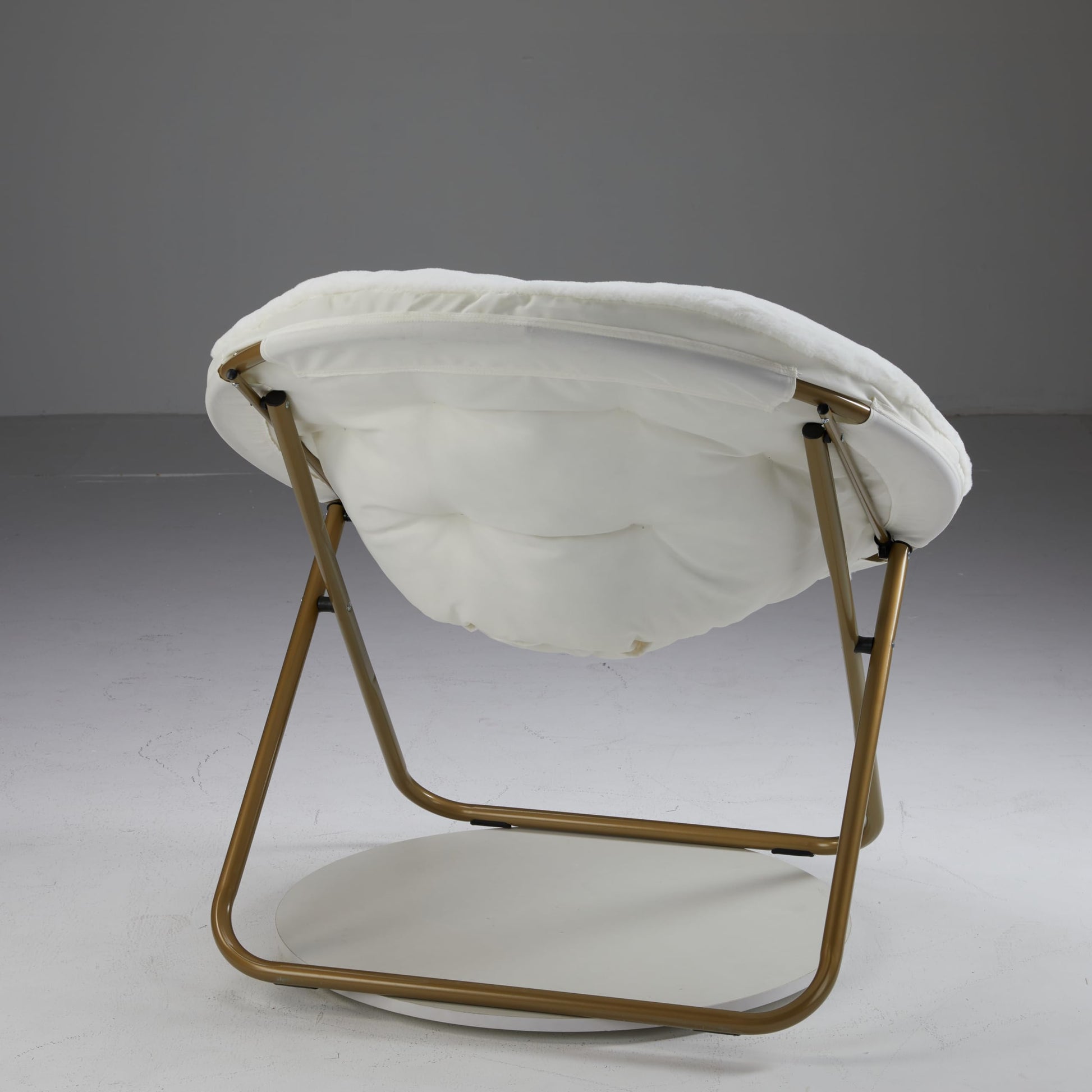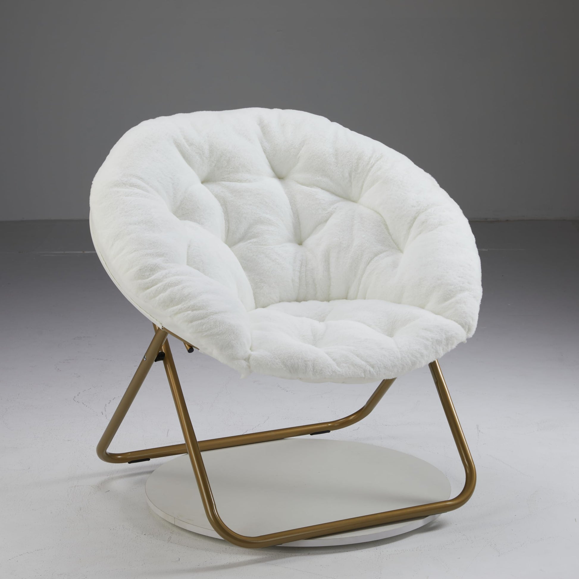 Simple Deluxe Cozy Chair, Faux Fur Saucer Chair for Bedroom, Comfy Foldable Moon Chair, Round Fluffy Chair for Living Room, Fuzzy Saucer Chairs for Adults Room, Gray