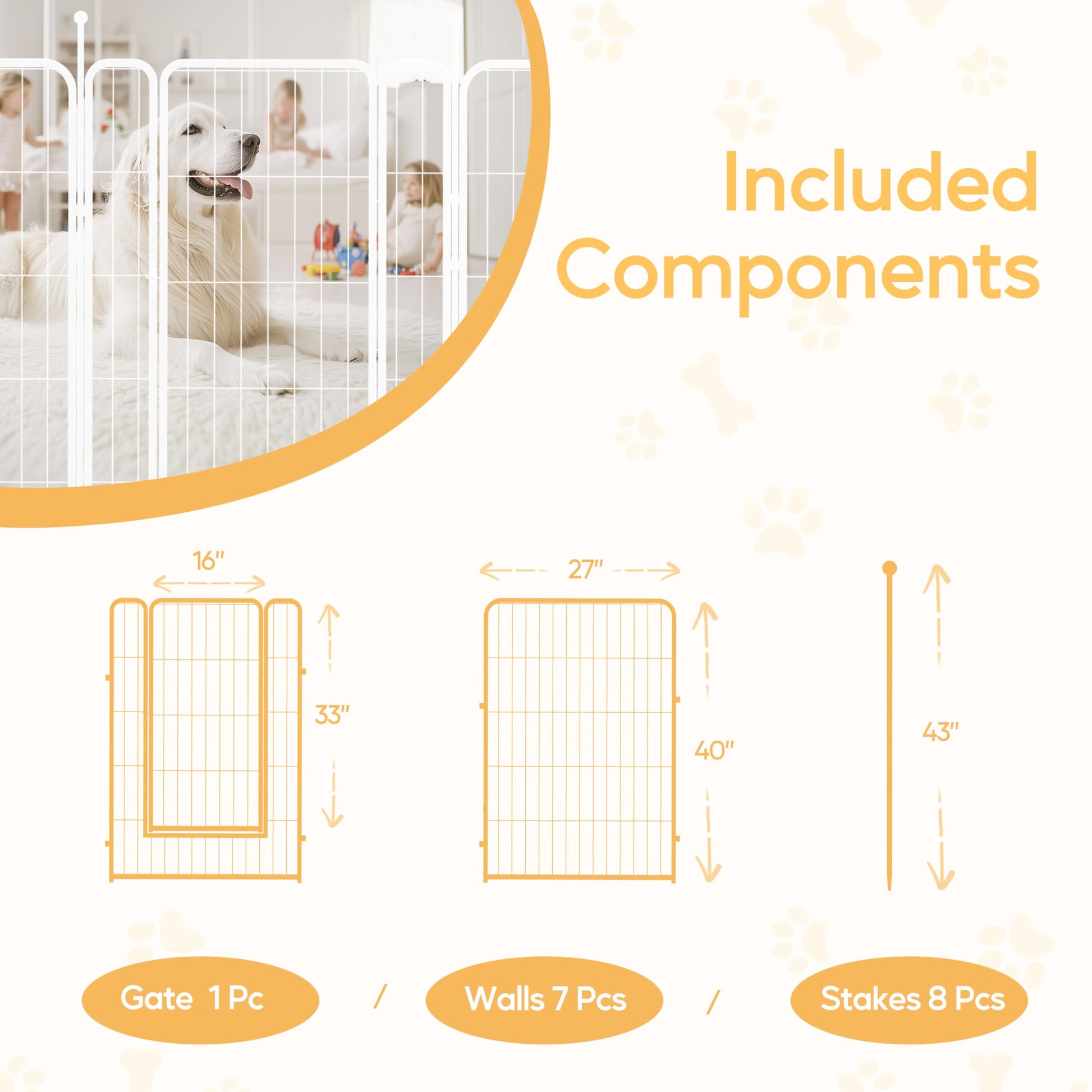 - Safe Activity Space: The fence provides sufficient activity space for pets. The automatic gravity lock prevents pets from running out. The round ball-pointed wooden stakes avoid injuries, allowing pets to play safely