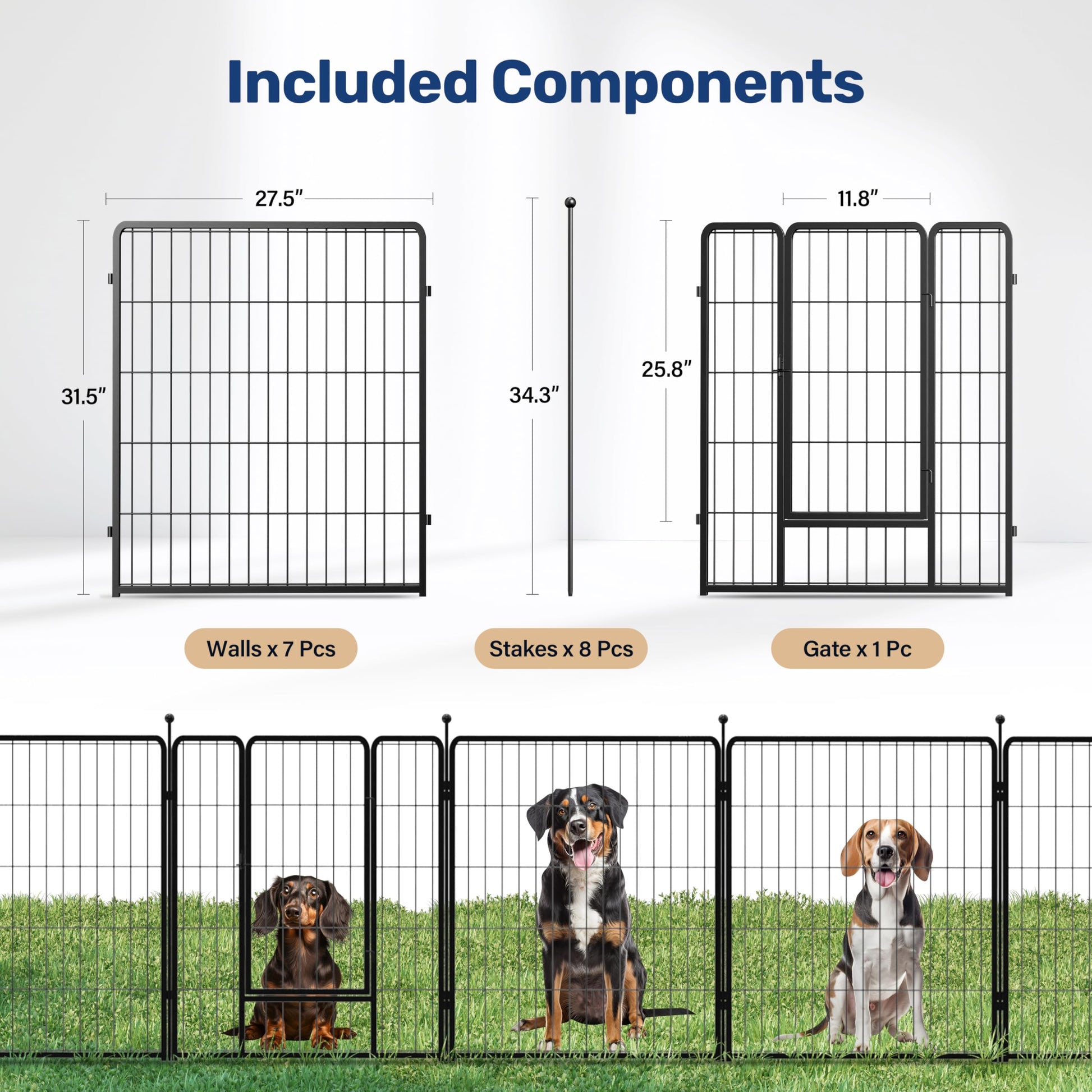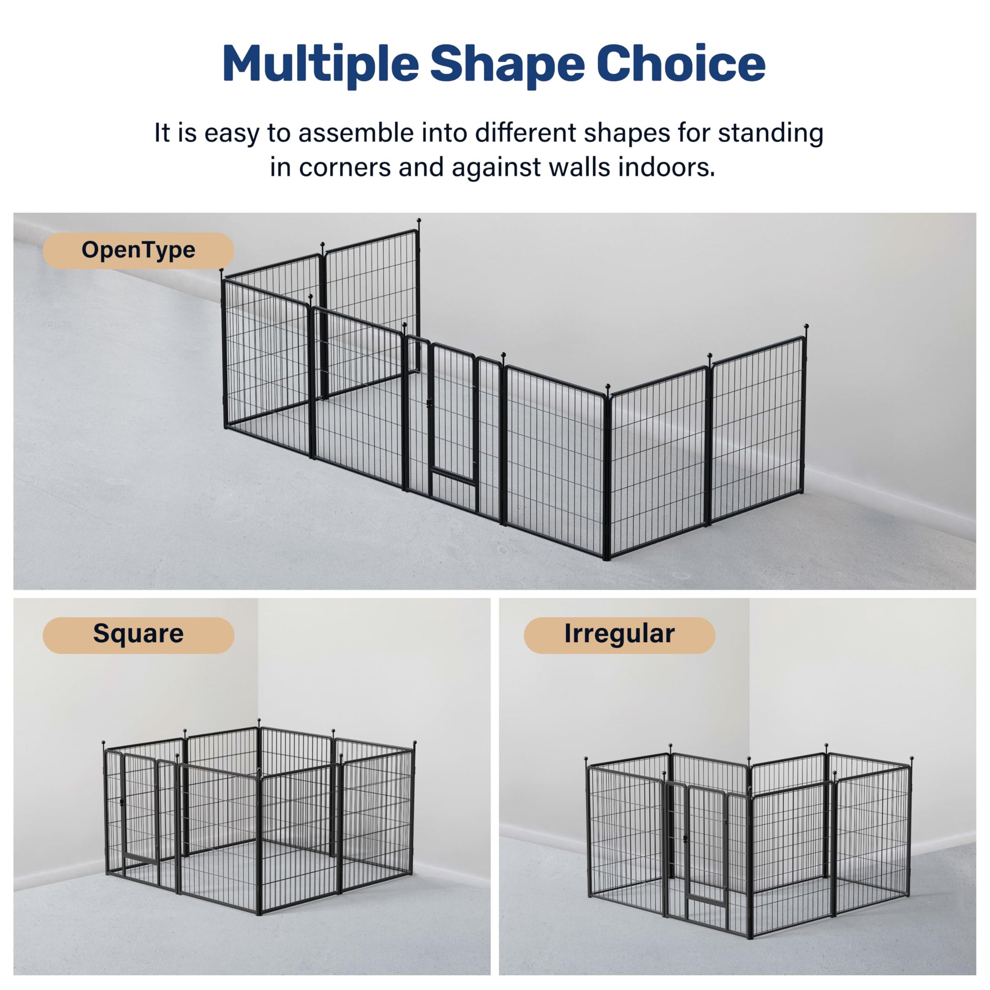 - [Design Upgrade] The dog pen is made of heavy metal sheets and stakes. Indoor gravity door lock design, safer and more convenient. Black coating, non-toxic, rust resistant. It can be used for a long time, whether indoors or outdoors