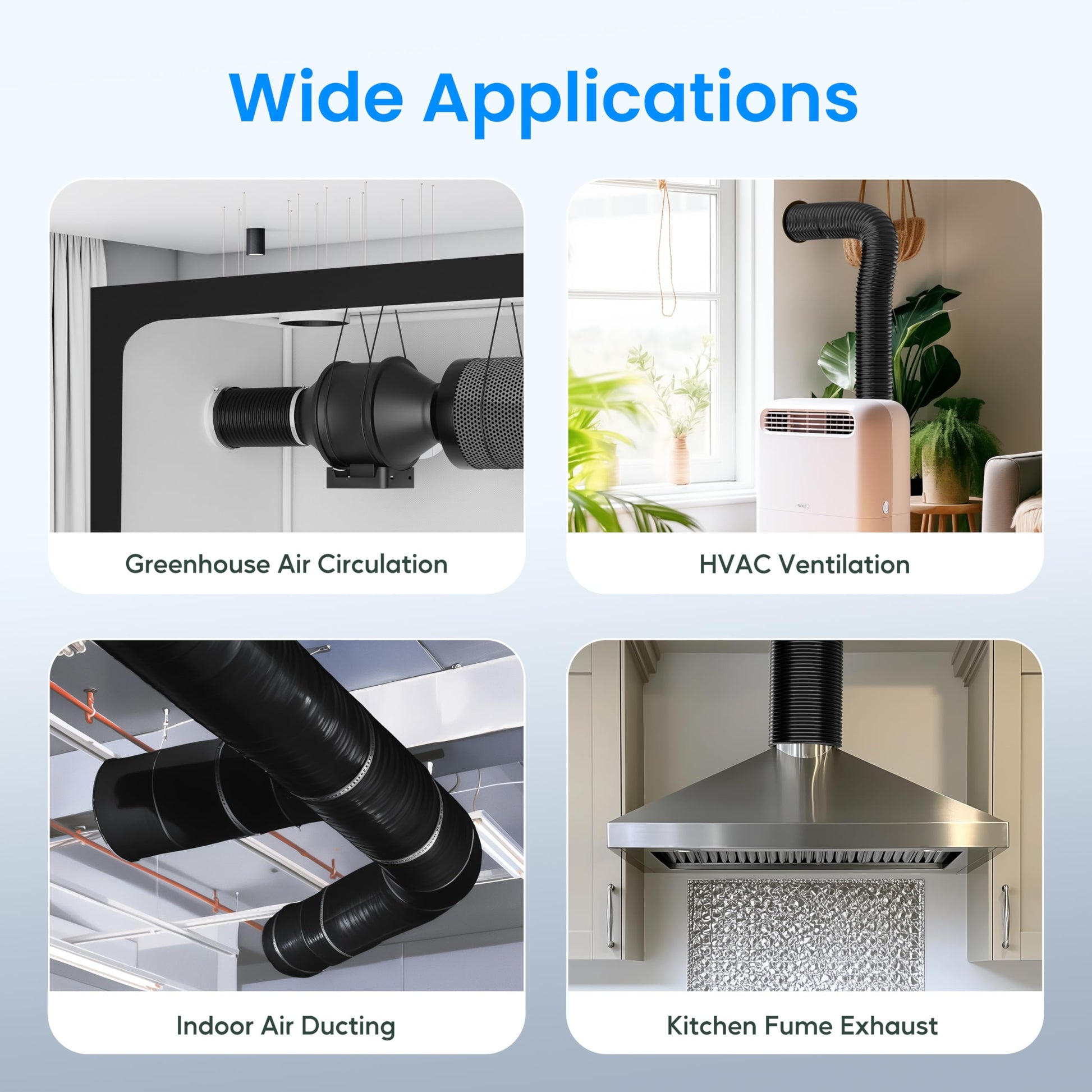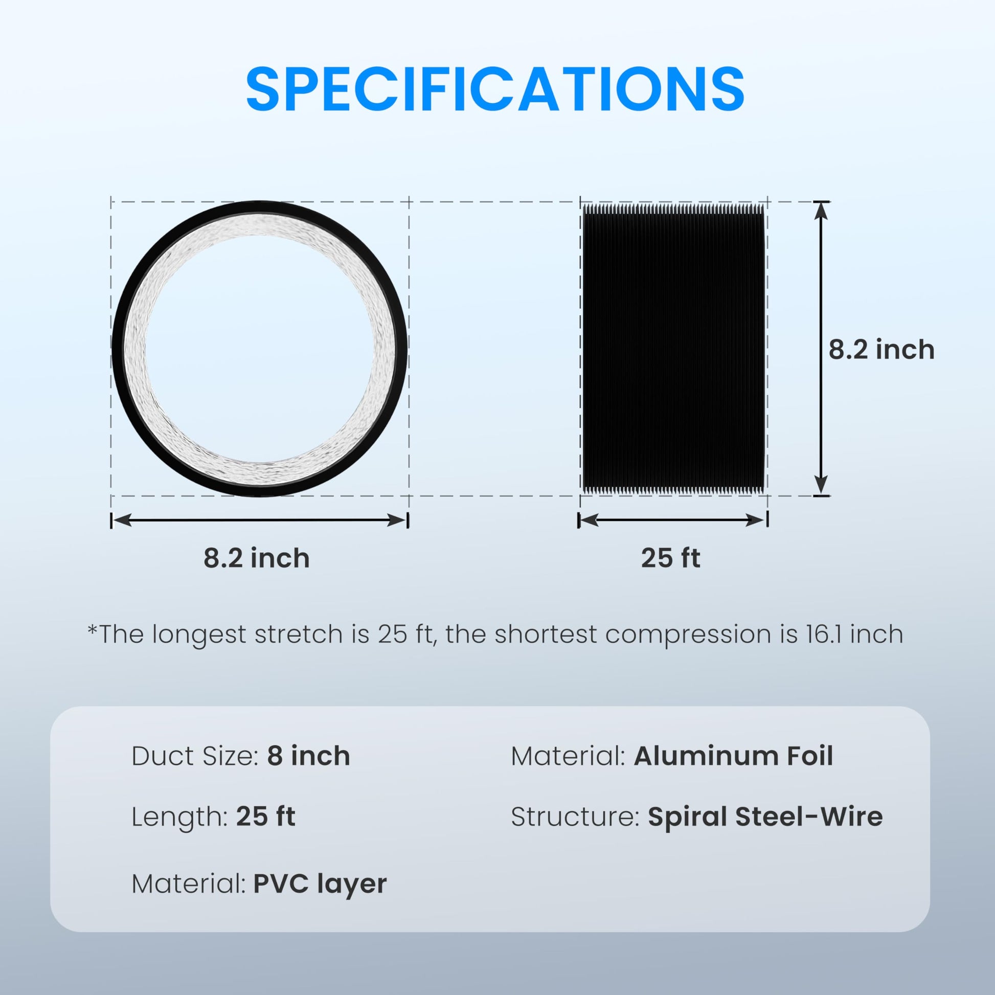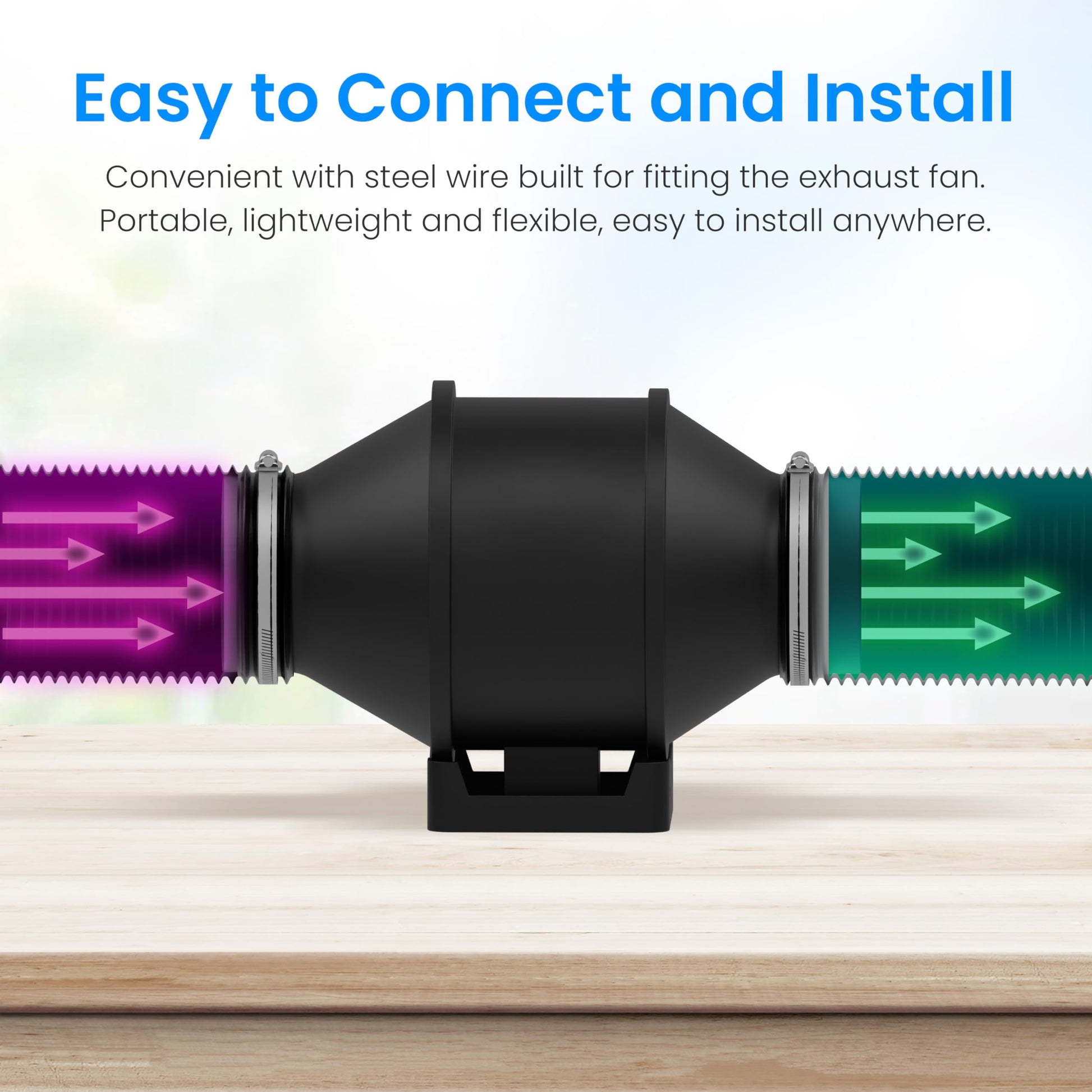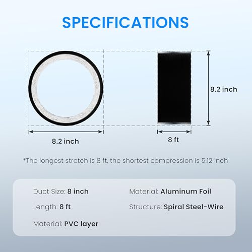 - Easy to Install: Thanks to the built-in steel wire, the aluminum foil duct can bend in any direction, allowing you to accommodate most space limitations for quick and easy setup.
