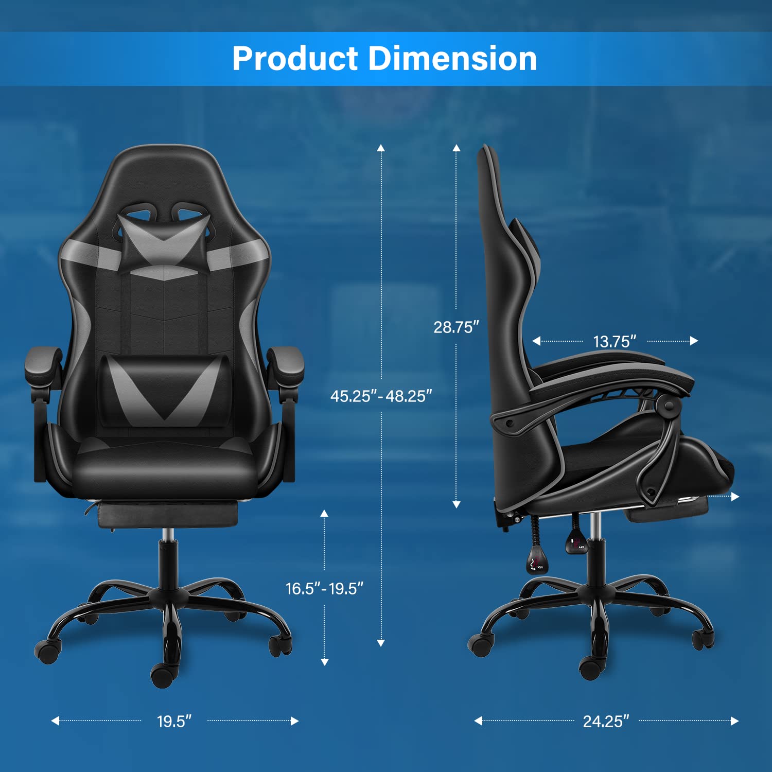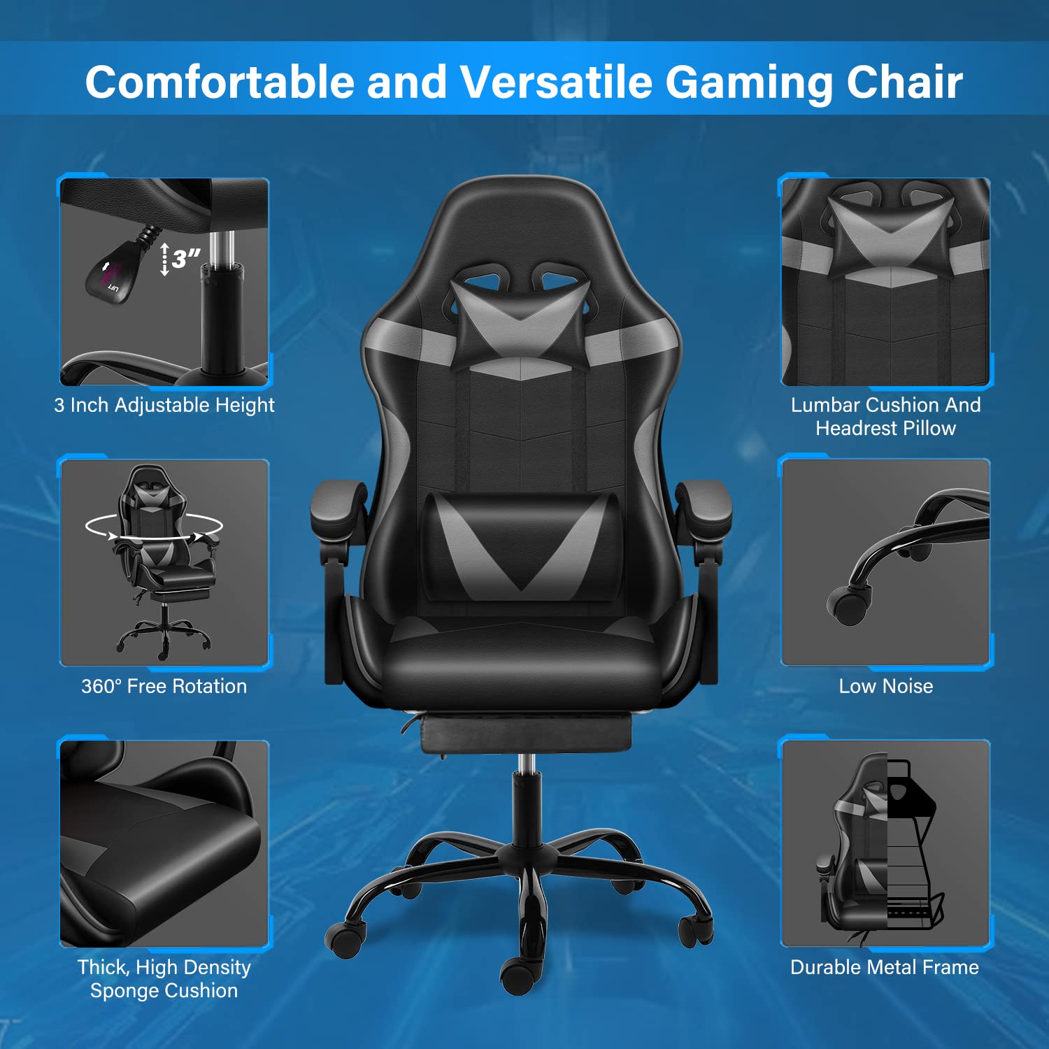 - Adjustable Chair:Seamlessly adapt to your gaming style with our chair's flexible design. The backrest smoothly adjusts from an upright 90° to a relaxed 120° angle, allowing you to find your perfect angle for play or rest. Paired with a 360° swivel seat and 3 inches of height customization, our chair offers a fully personalized gaming throne that responds intuitively to your every move.