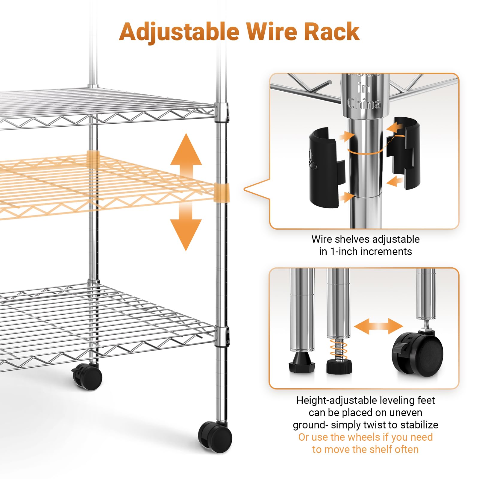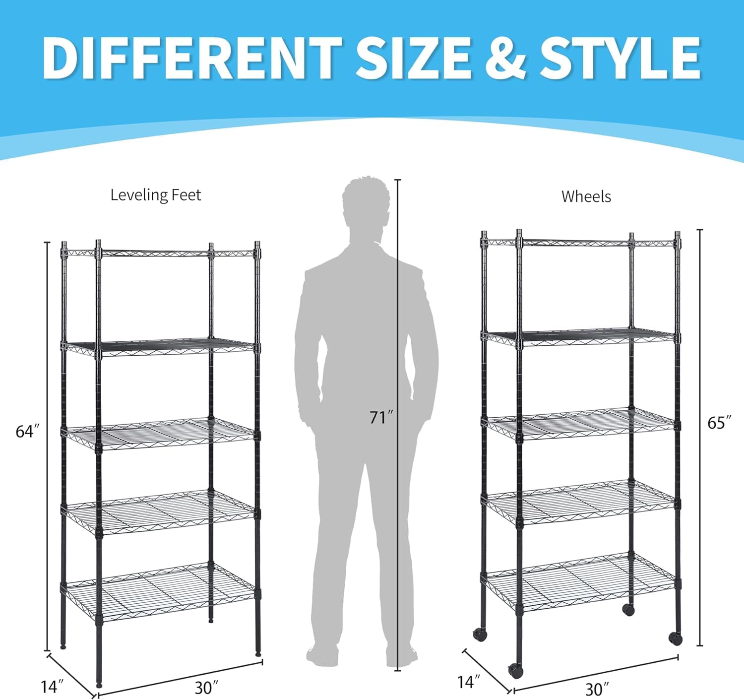 - Space-Saving Design - With compact dimensions of 36 x 14 x 54 inches (W x D x H), the wire shelves can be customized in 1-inch increments to fit your storage needs perfectly
