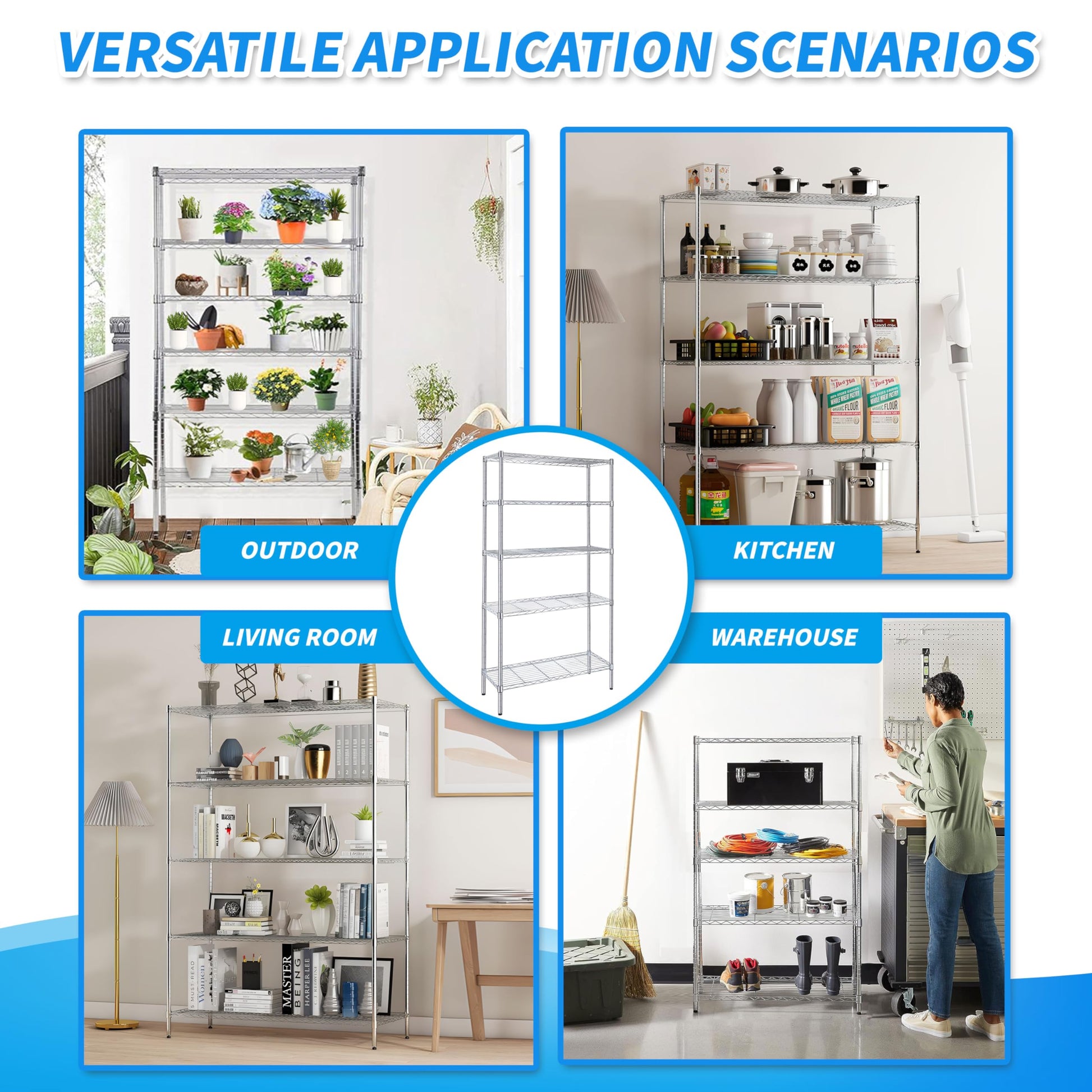 - Versatile 4-Shelf Unit - Optimize your storage efficiency with this shelf, ideal for organizing your kitchen, office, garage, bathroom or anywhere you need