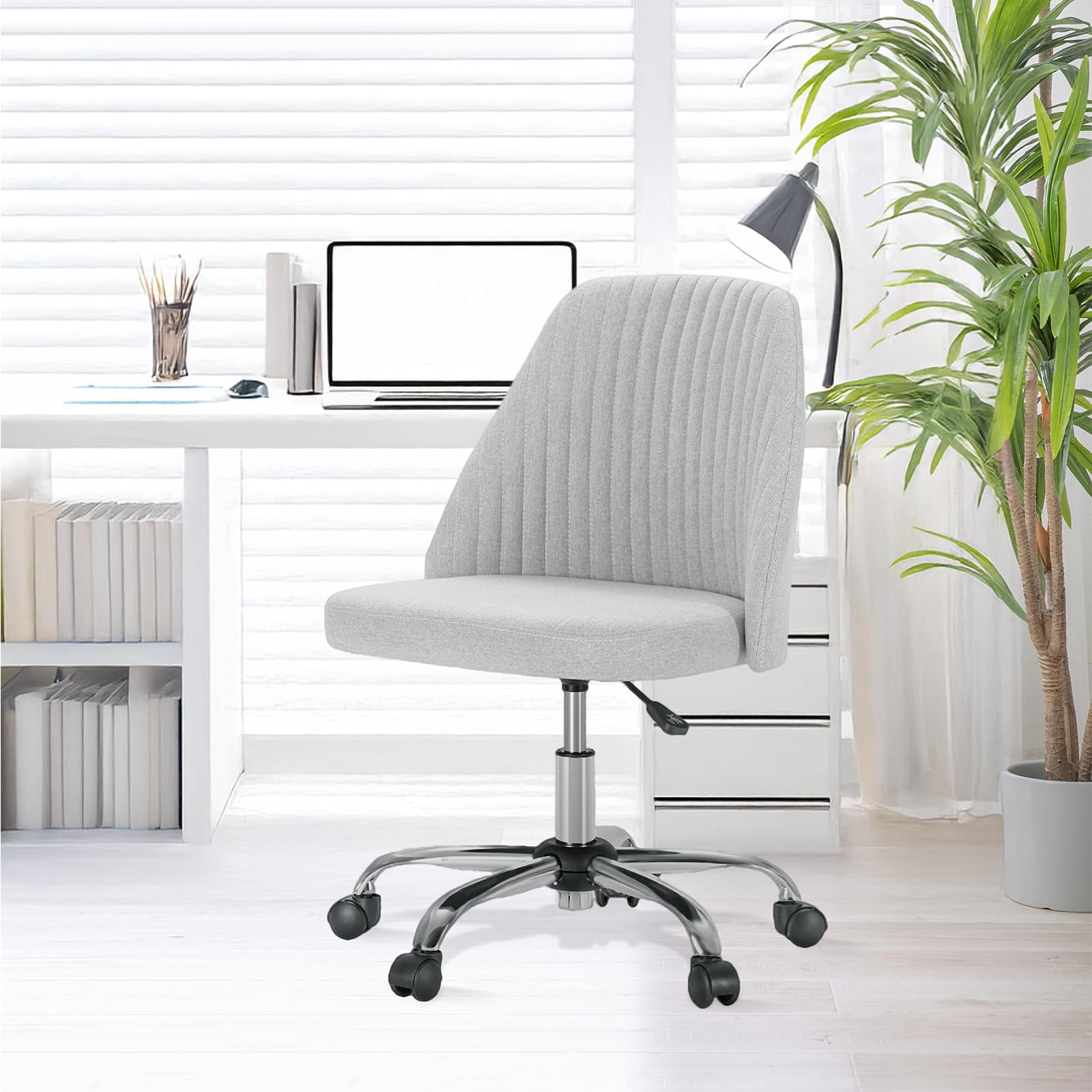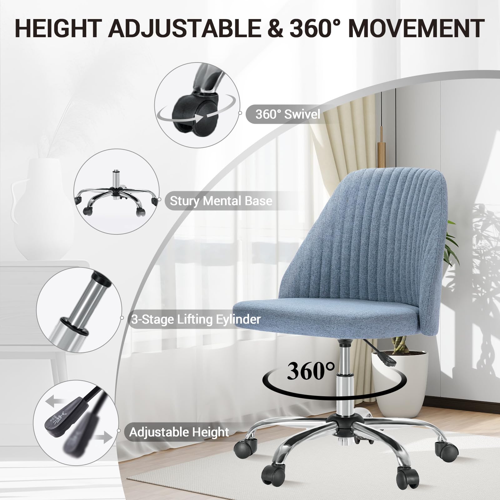 Simple Deluxe Office Desk Chair with Back and Wheels Computer Fabric Chair Armless Adjustable Height Comfy Vanity Chair with Swivel Rolling Home Chairs for Bedroom Adult