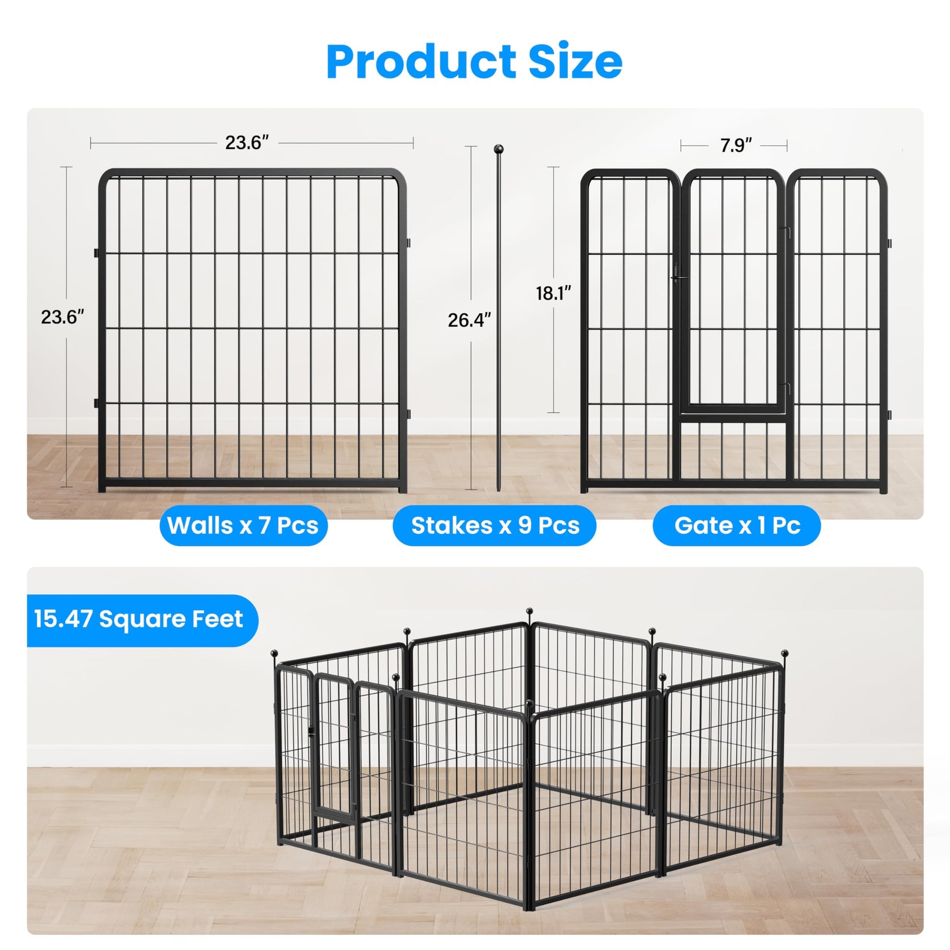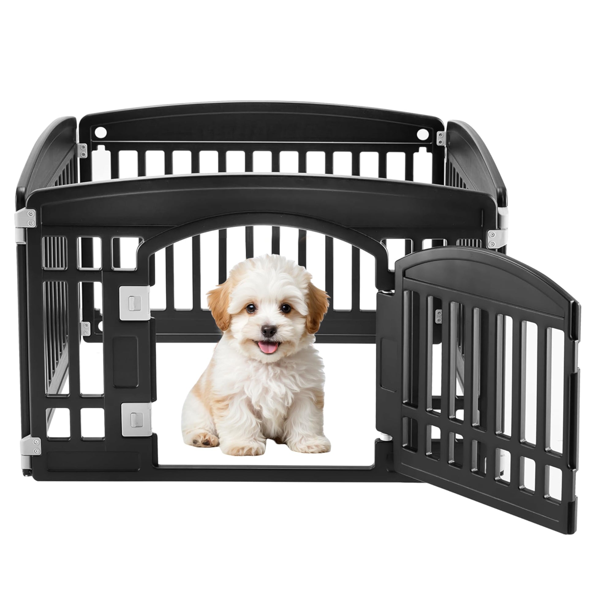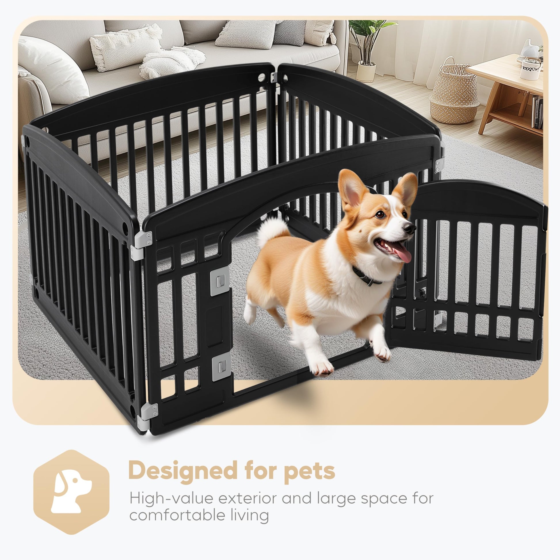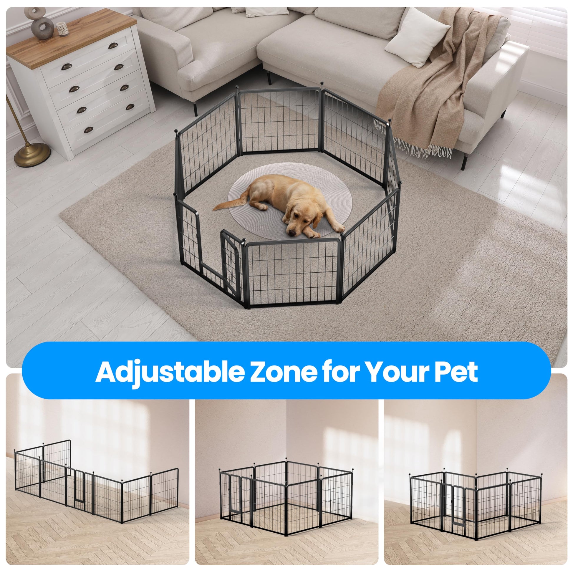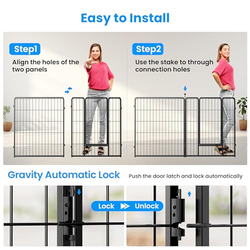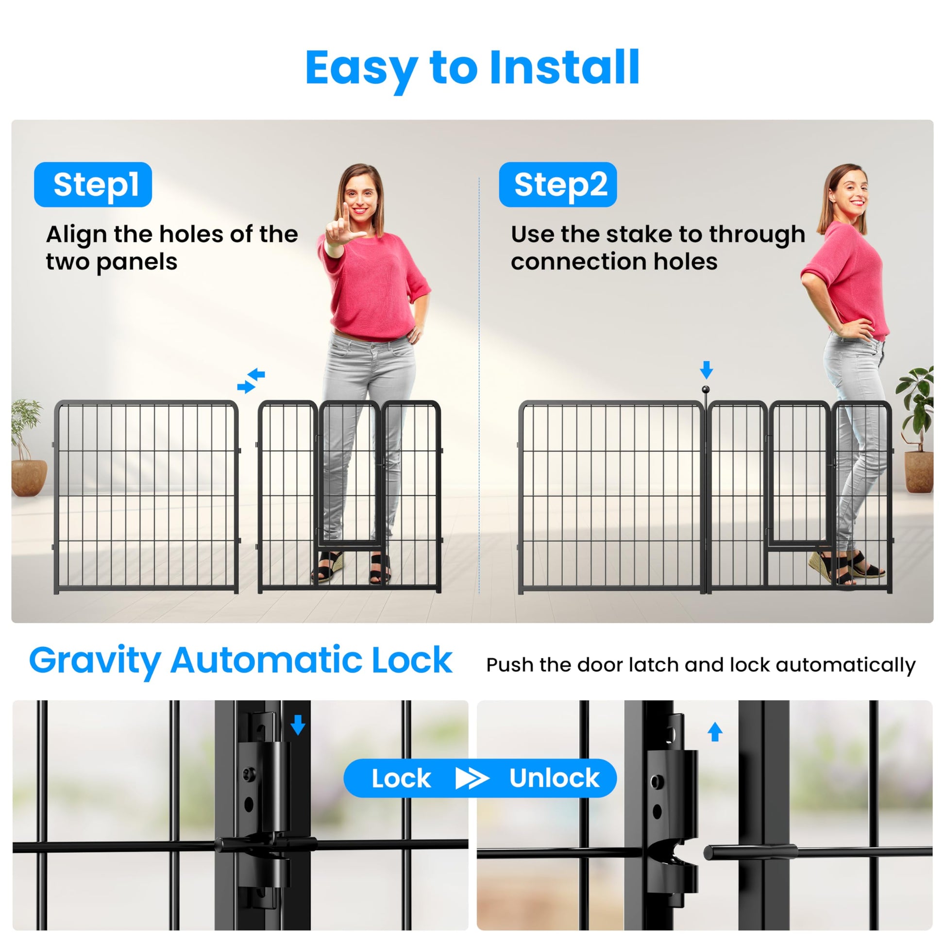 - 【Upgraded Dog Playpen】Playpen dog for medium dogs adopts gravity door lock design, much safer and more convenient. Made of heavy duty metal panels and stakes with black coating, non-toxic, anti-rust. Ensures long time use no matter indoor or outdoor.
