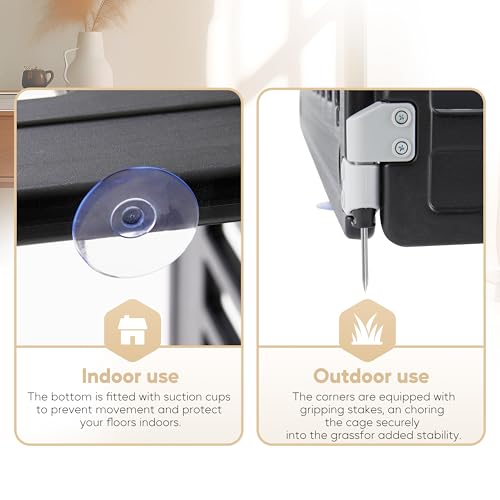 - 【Safe & Free Space】Offering enough space for you pets to play and exercise. The automatic gravity-actioned locking can keep your pets safe and prevent them rushing out of the door. The stakes with round ball tips protect you and animals from injury.