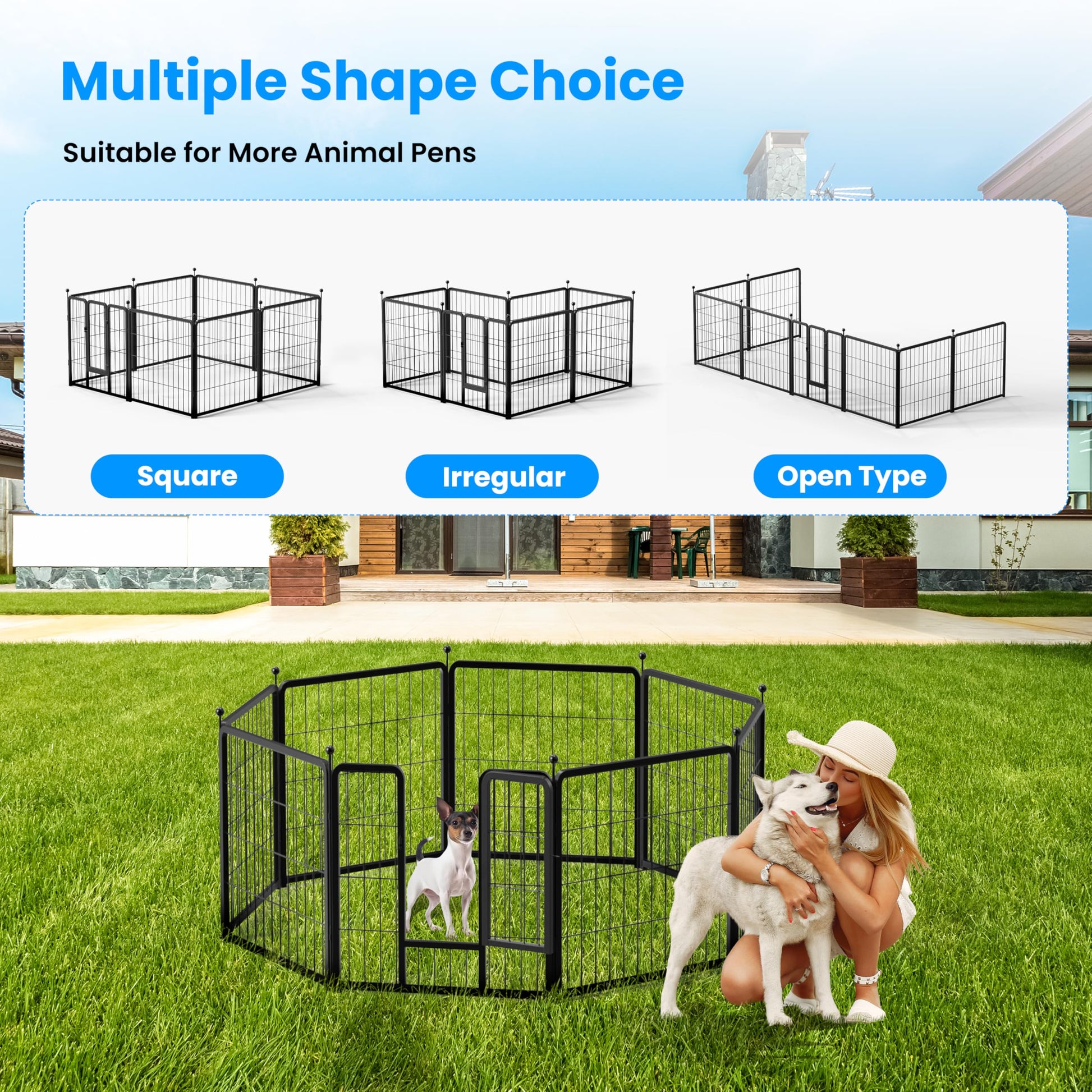 - 【Easy Assemble & DIY Shapes】Each panel is a separate piece. The panels could be assembled in just a few minutes without tools. You could DIY the dog pen to any shape you need, like square, rectangle, round, etc according to your house, garden or lawn.