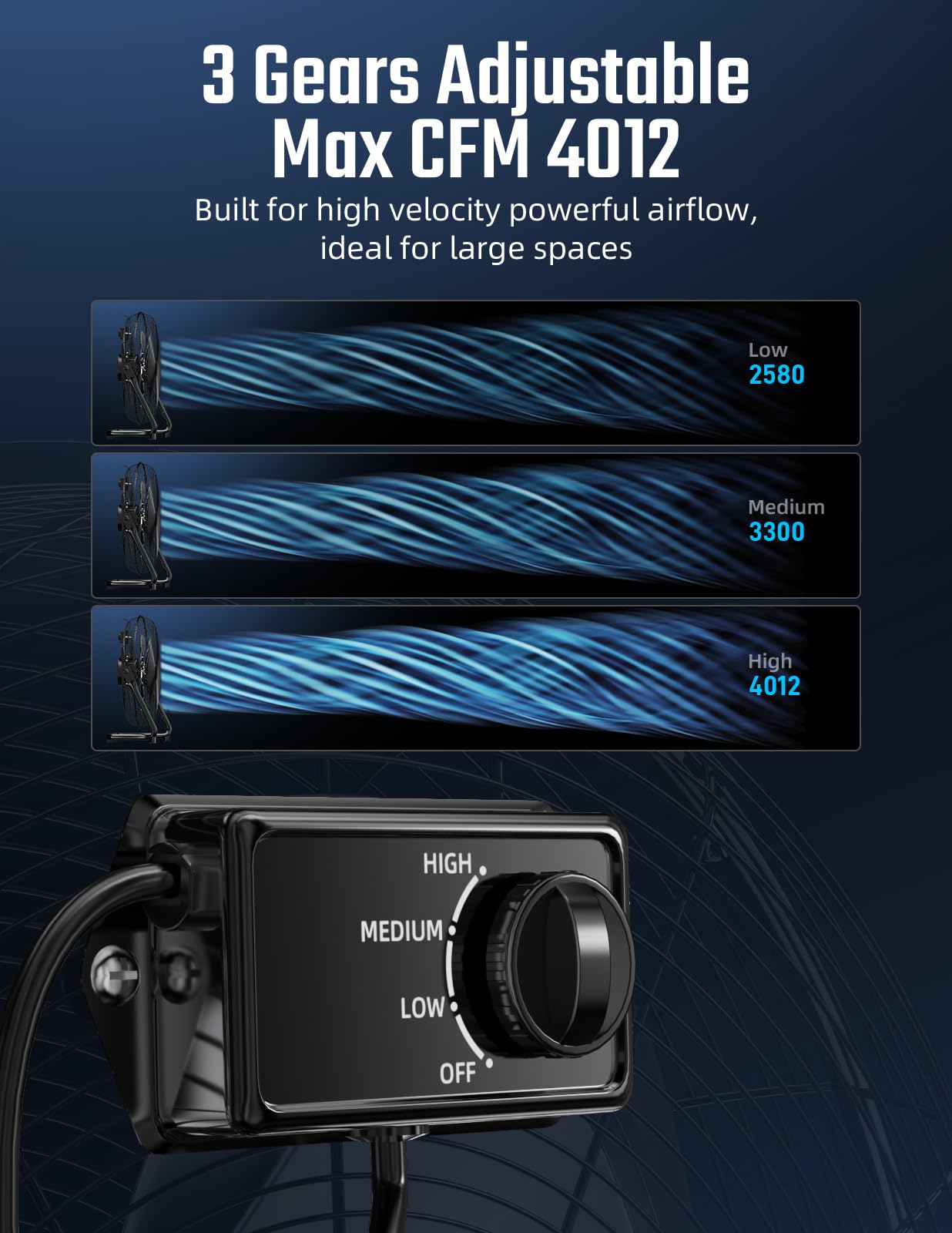 - 3 speed high-torque, permanently lubricated motor with 3-speed rotary switches help you for different airflow.