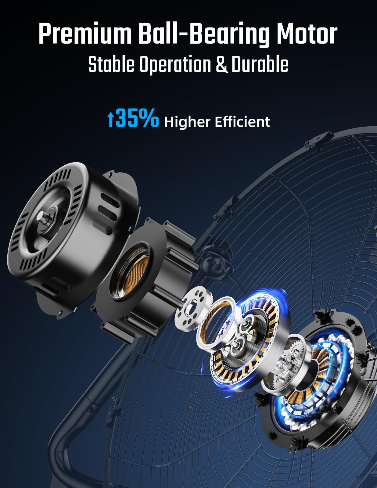 - Thanks to the ball-bearing motors, these floor fans can run at least years under good caring.