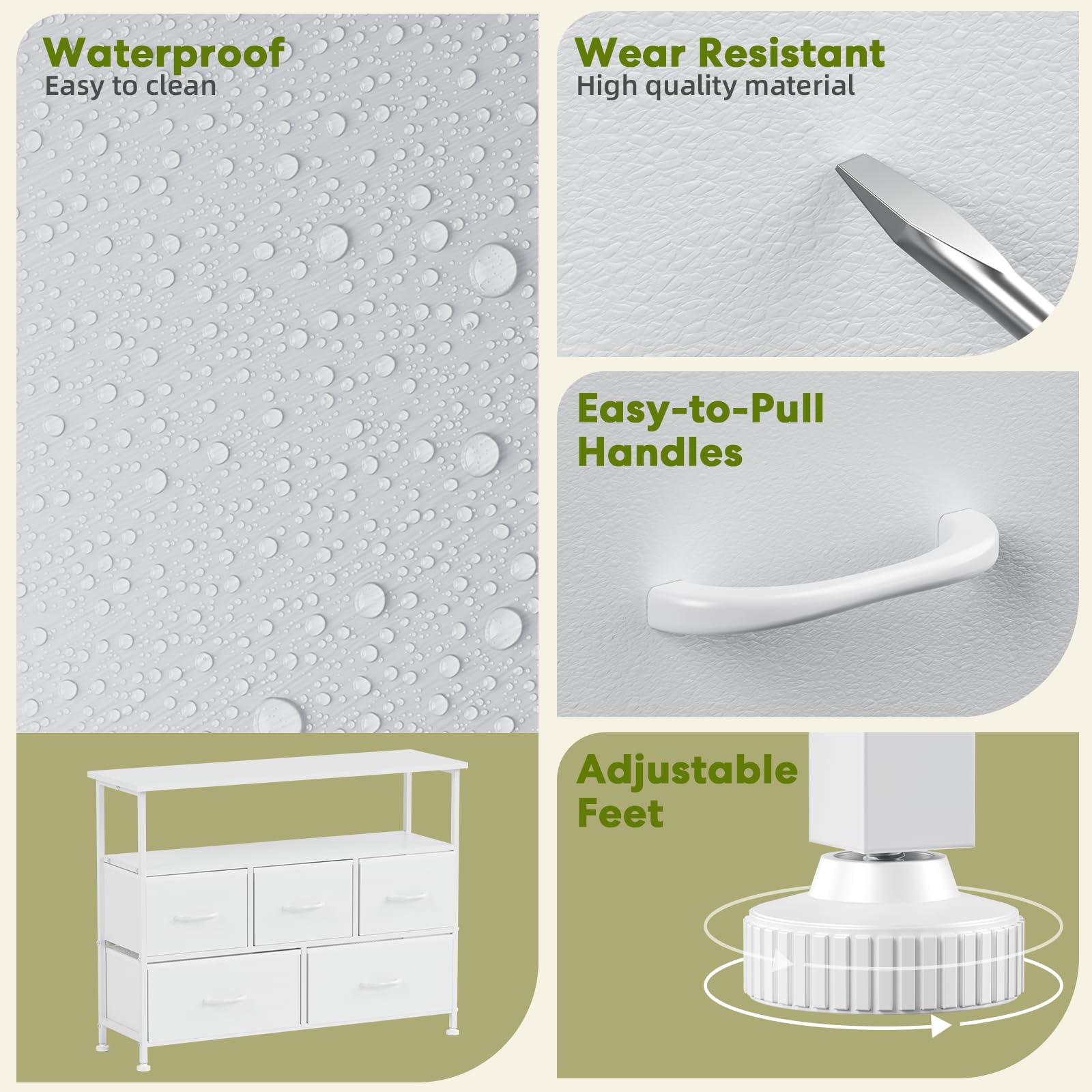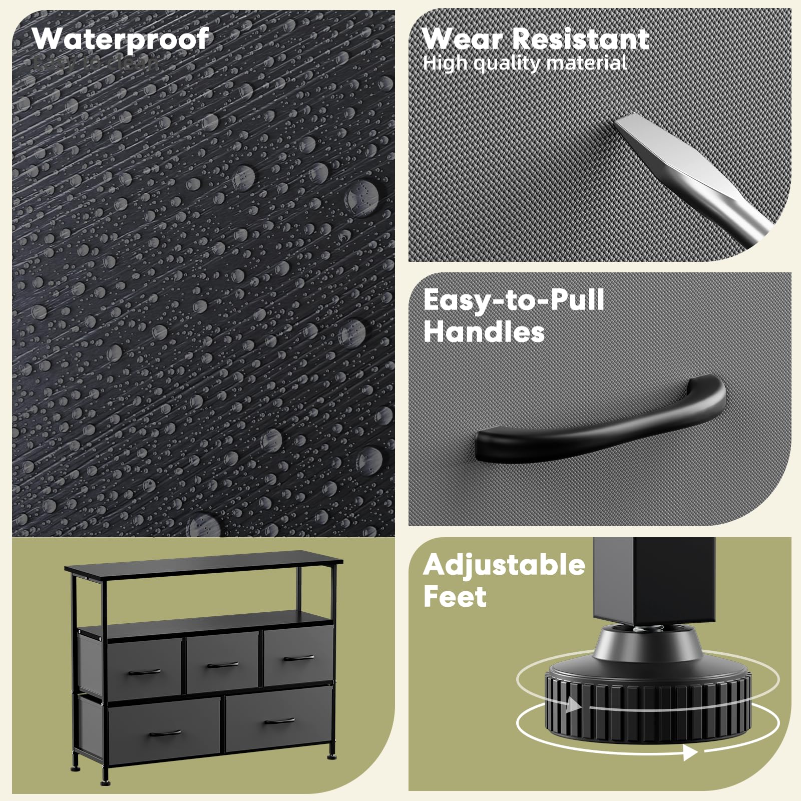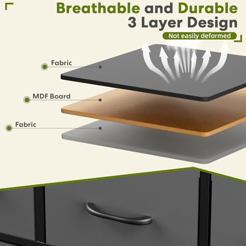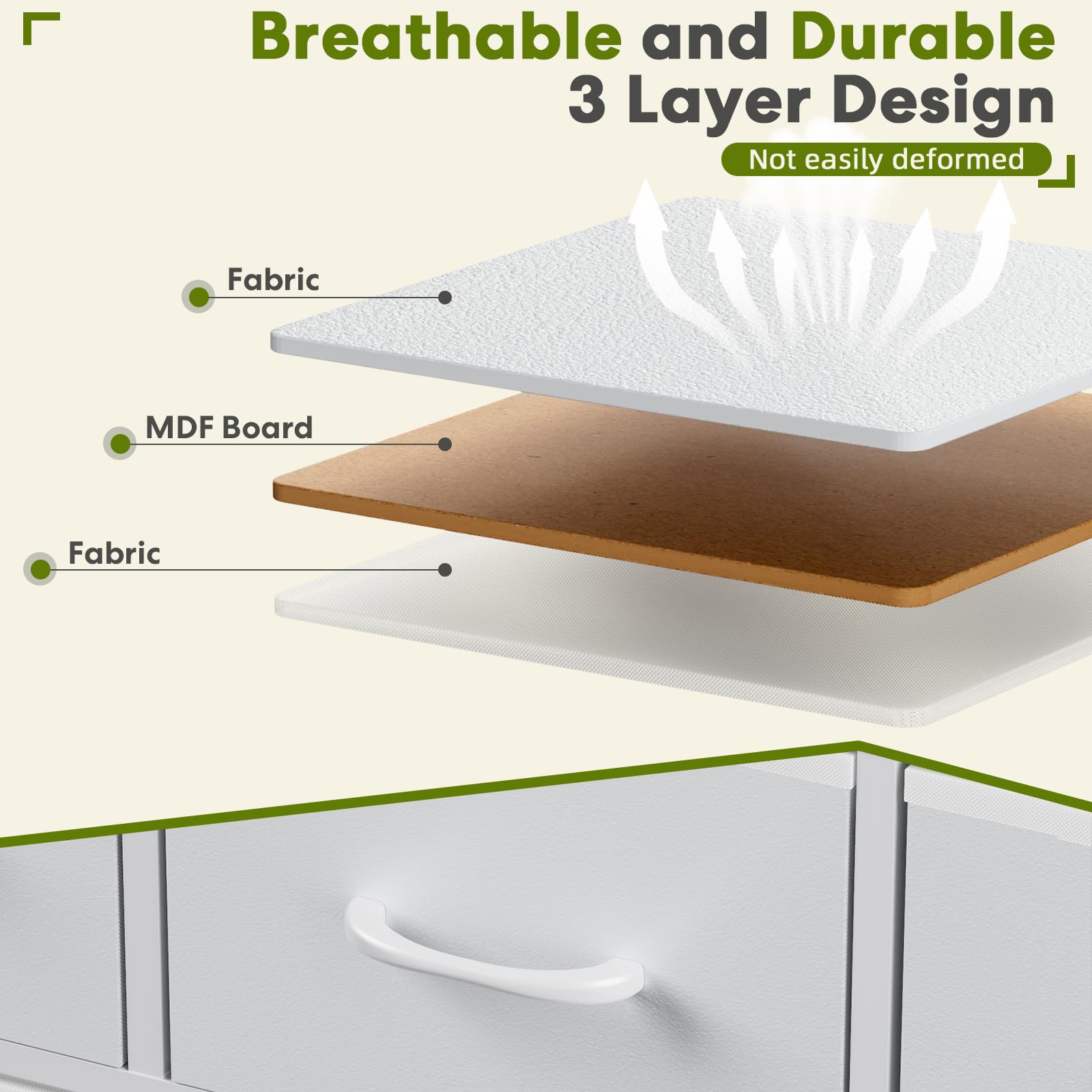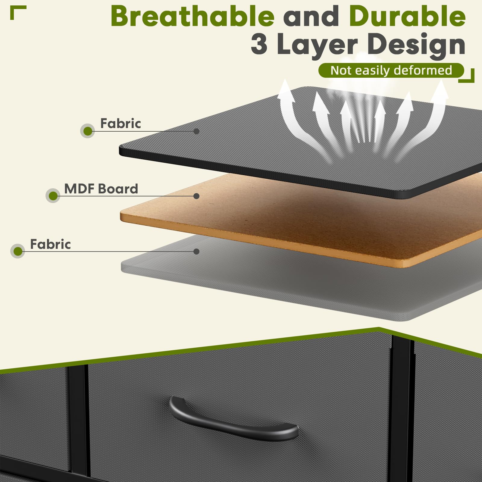 - 【Easy to Clean & Maintain】The fabric drawers are easy to clean, stain-resistant, and moisture-proof, with a breathable design perfect for storing clothes, blankets, and more. Topped with a durable, scratch-resistant wood surface, this dresser combines practicality and style, making it a low-maintenance storage solution for any home.