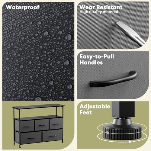 - 【Sturdy, Safe and Stable】Crafted from high-quality fabric, a durable wooden top, a robust and non-wobble metal frame and easy to-pull handles, this dresser TV stand brings longevity while being lightweight to move. Drawers glide smoothly for easy open and close. With anti-tip kits included, it's ensures this clothes dresser stays securely in place. The 4 adjustable feet keep it stable on uneven surfaces and safeguard your floors from scratches.