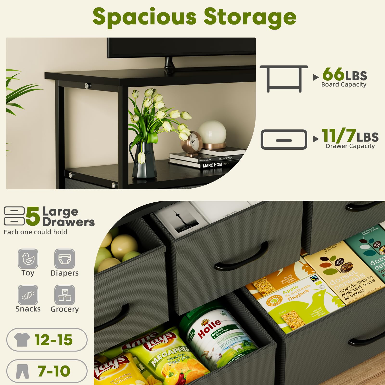 Simple Deluxe TV Stand Dresser for Bedroom Entertainment Center with 5 Fabric Drawers, Storage Organizers Units for Living Room, Media Console Table with Open Shelf up for 45" TV, Wood top