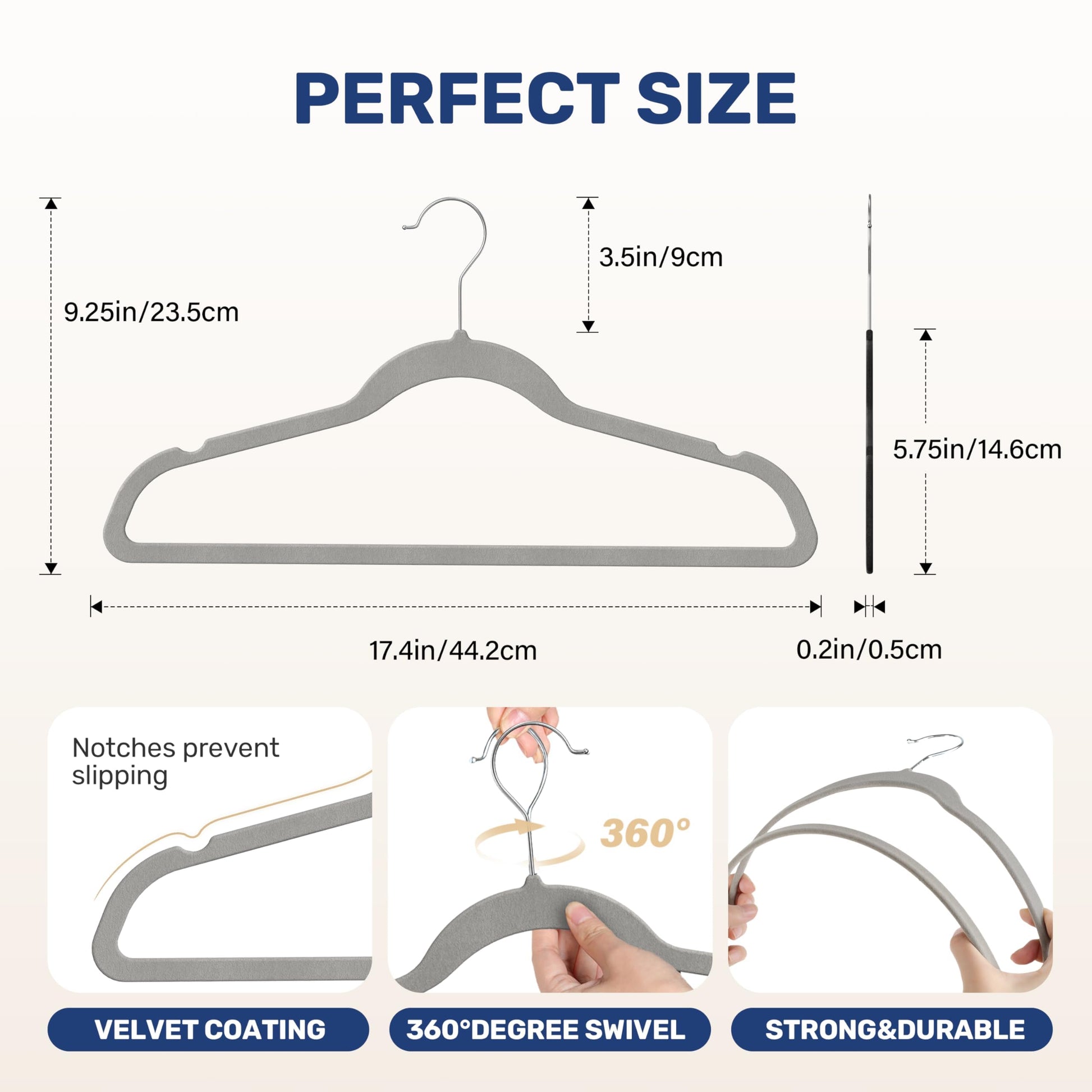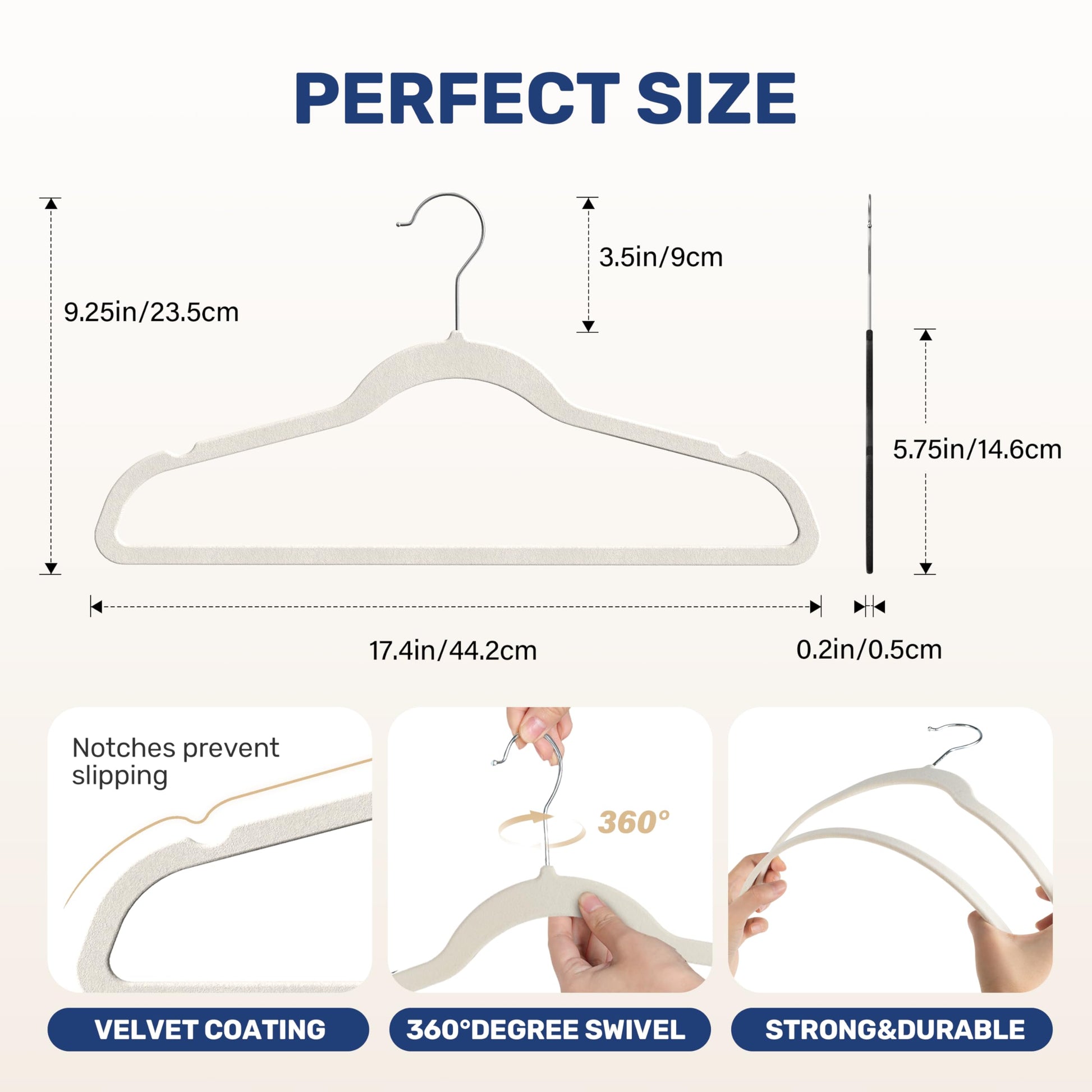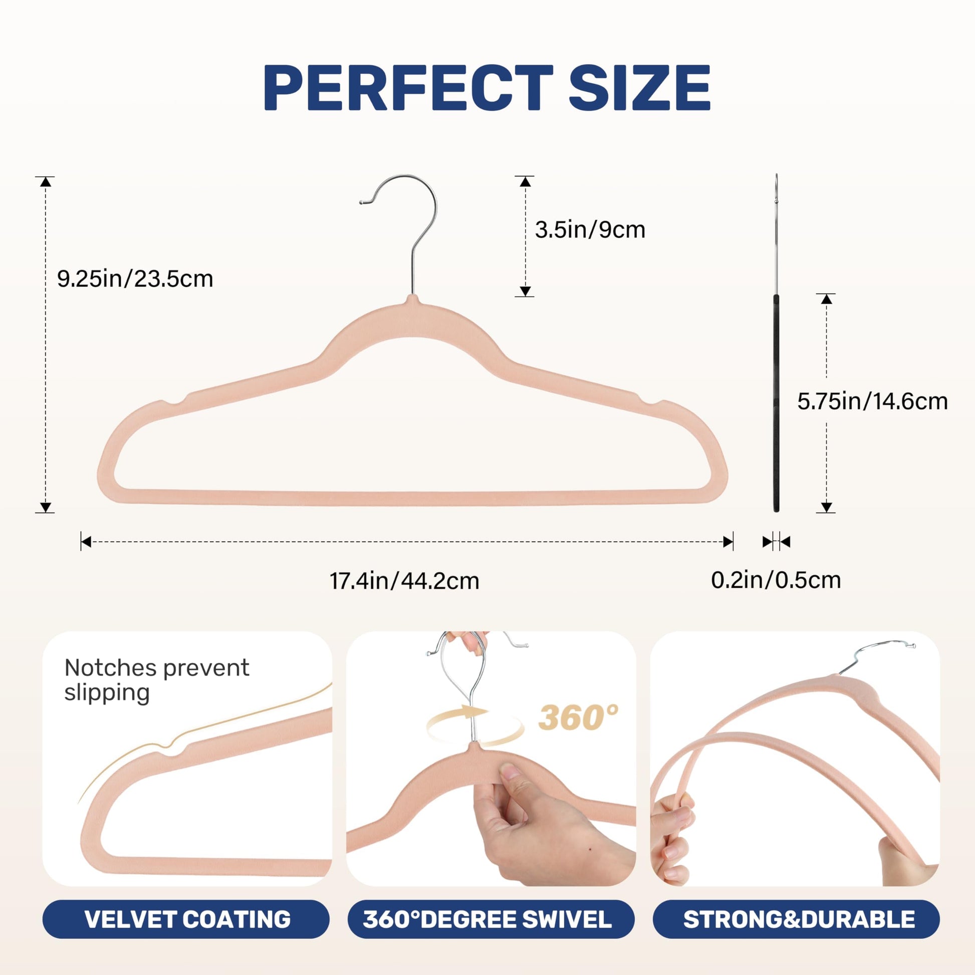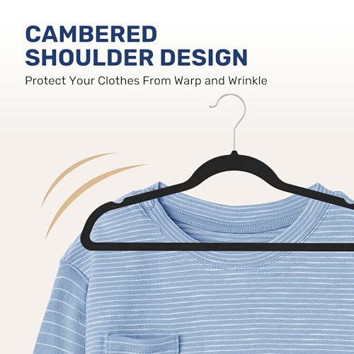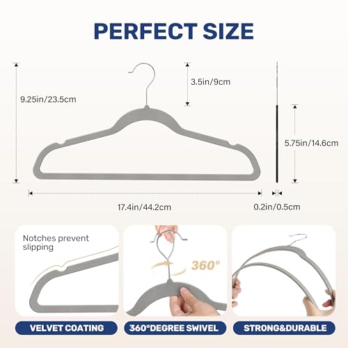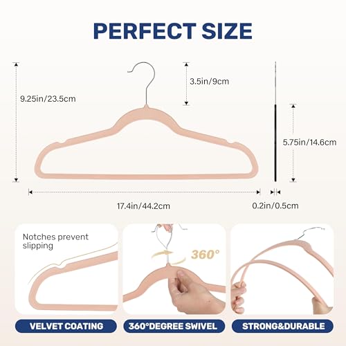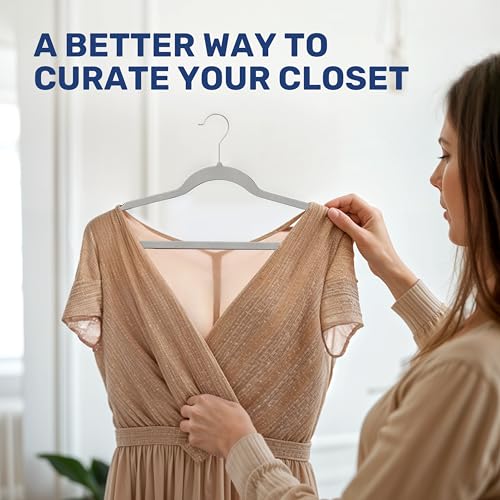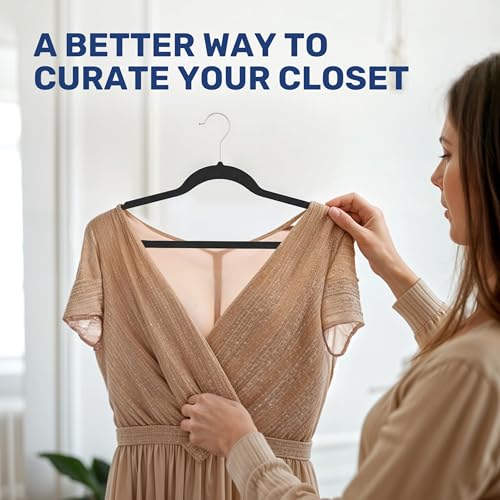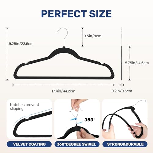 - 【Space Saving】With an ultra-thin 0.2" design, our velvet hangers ensure you maximize your closet space by minimizing clutter and bulky hang-ups.