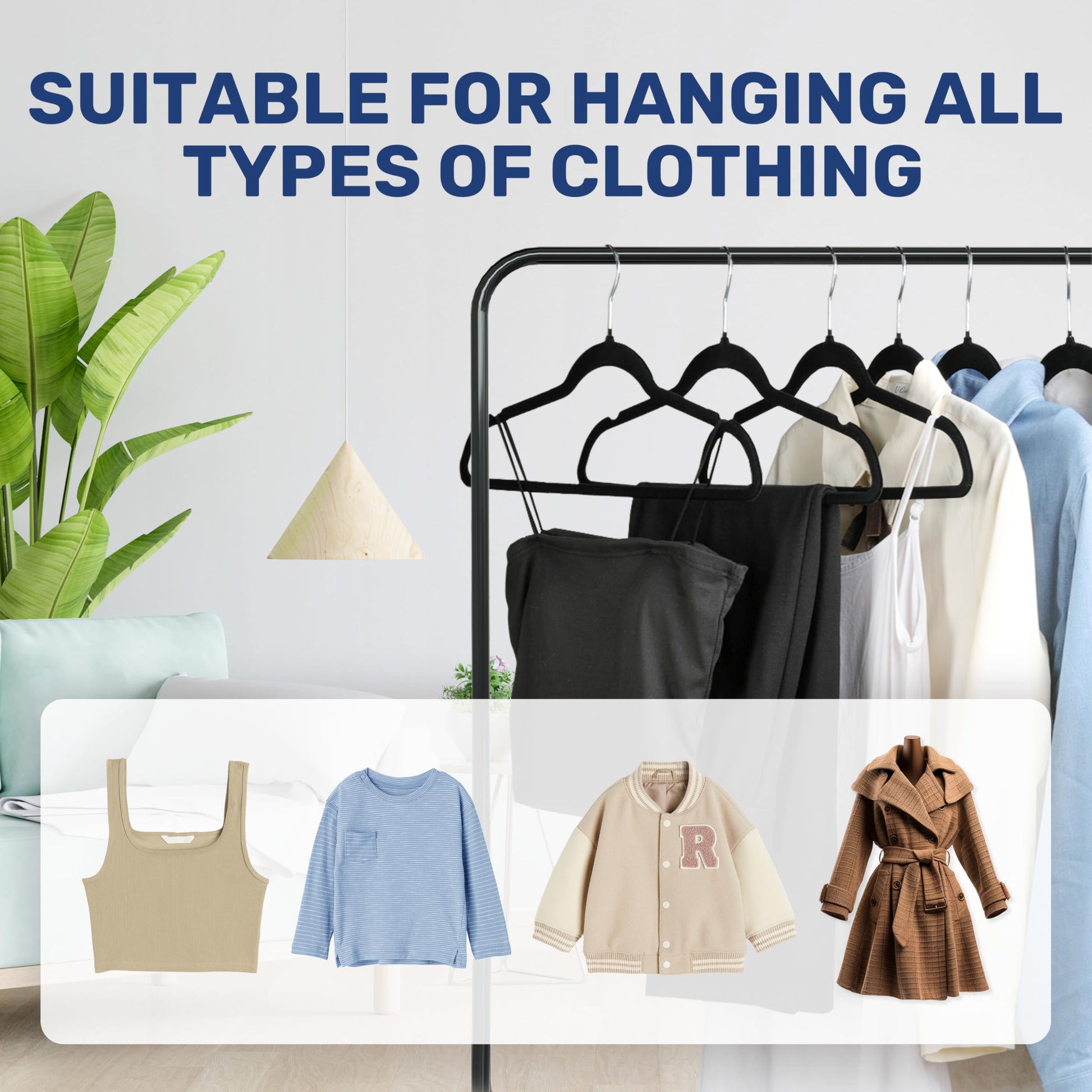 - 【360° Sturdy Swivel Hook】These sturdy 360-degree rotating velvet hangers not only hold heavy clothes without bending, but also easily adjust the orientation of the clothes, making hanging clothes extremely convenient.