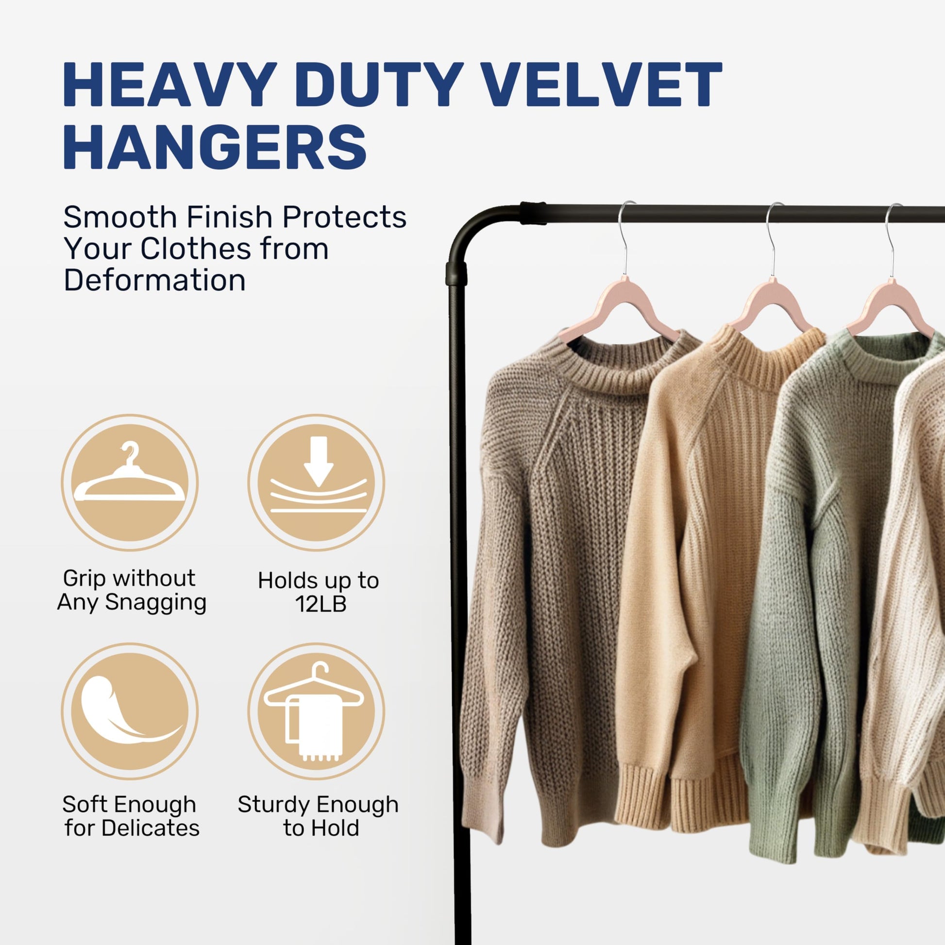 - 【Durable】Each sturdy hanger can hold up to 12 lbs (5.5 kgs). Whether you need to hang a heavy winter coat or a thin satin top, or even small ornaments. These hangers will meet your needs and protect your favorite clothes from distortion and wrinkles.